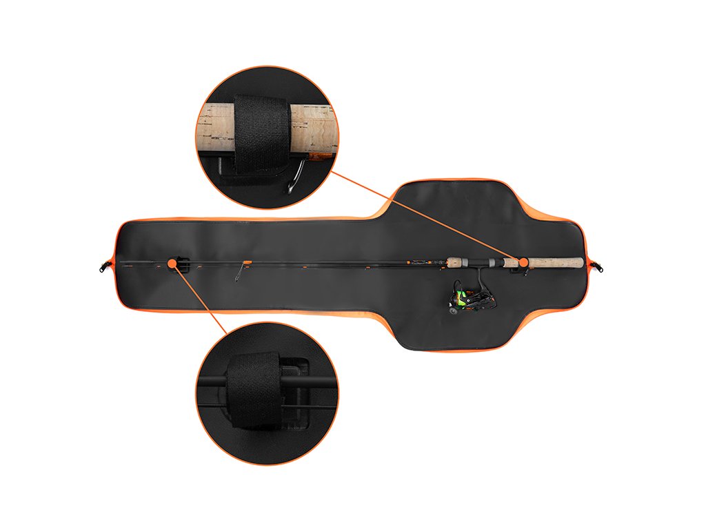 Vďaka rozšírenej časti na uloženie navijaka sa do puzdra vojde každá štandardne používaná prívlačová zostava. Puzdro je dostupné vo viacerých dĺžkach, tak aby bolo vhodné pre čo najširšiu škálu prútov. O maximálnu stabilitu počas transportu sa starajú dva vnútorné suché zipsy, ktoré prút pevne zafixujú a zabránia jeho nechcenému pohybu.