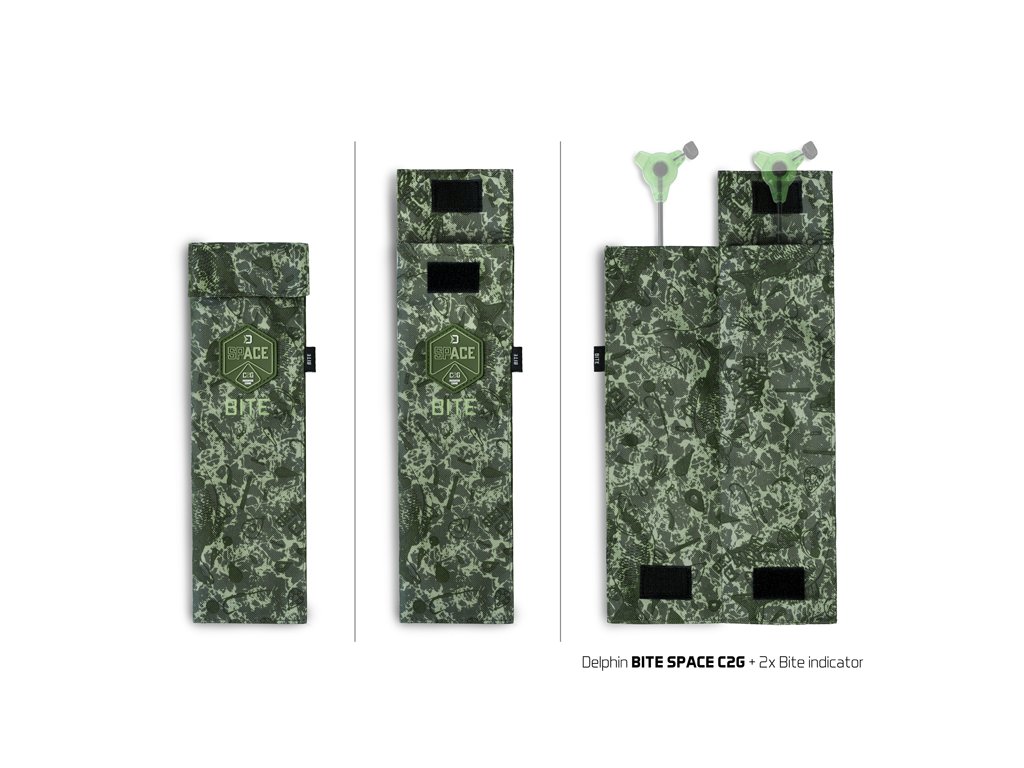 Delphin SPACE je označenie pre exkluzívnu sériu tašiek z dielne značky Delphin. Vyznačuje sa špičkovým spracovaním, kvalitnými zipsami, ale najmä výnimočným dizajnom s použitím C2G kamufláže.Jednoduché a účelné puzdro, ktoré ochráni vaše závesné signalizátory s ramienkom pred neželaným poškodením. Samotné puzdro sa skladá z dvoch oddelených vreciek, kam pohodlne uložíte 2 signalizátory. Rozmery vreciek sú dostatočné, aby uskladnili 2 signalizátory bežných rozmerov, ktoré sa odteraz nebudú bezcieľne povaľovať vo vašej výbave. Puzdro po zasunutí signalizátorov jednoducho preložíte na polovicu a zaistíte suchými zipsami. Tak získate veľmi kompaktného pomocníka na rybárske výpravy.