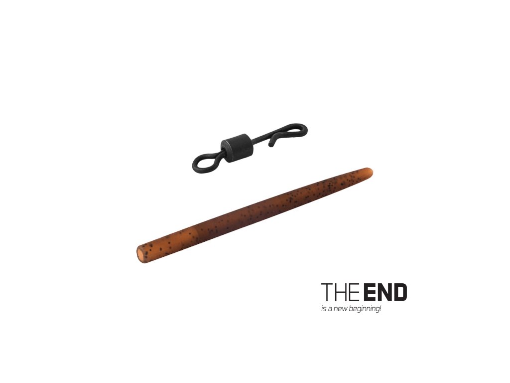 Sada čierneho rýchloupínacieho obratlíka "Quick Swap" s ochrannou G-Round gumičkou. Obratlík slúži pre rýchlu výmenu hotových nadväzcov. Ochranná kamuflážová gumička zaisťuje nadväzec proti samovoľnému vypadnutiu a zároveň zabraňuje zamotaniu montáže počas nahadzovania. Balenie obsahuje 6 obratlíkov a 6 gumičiek.Séria kaprárskej bižutérie THE END v unikátnom kamuflážovom G-Round vyhotovení dielov vyrobených vstrekovacíkm lisom v najvyššej kvalite. Ideálny lom svetla pod hladinou robí z týchto produktov takmer nebadateľné prvky vodného sveta. Čiastočne transparentná hnedá farba v spojení s čiernymi matnými časticami sú tým pravým receptom na bezchybné odprezentovanie nástrahy. Špičkové detaily, dlhá trvácnosť a spoľahlivé systémy pre vaše kaprárske nadväzce, to je THE END! Pretože koniec zostavy je nový začiatok vášho rybárskeho príbehu!