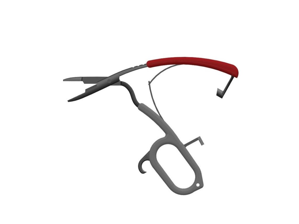 - Angled Head for Exceptional Visibility and Reach - Smooth Jaws for Pinching Barbs, and Serrated Scissor • Ergonomically Spaced Foam Grips Provide Ultimate Control and Comfort - Combo Bottle Opener/Knot Tension Tool