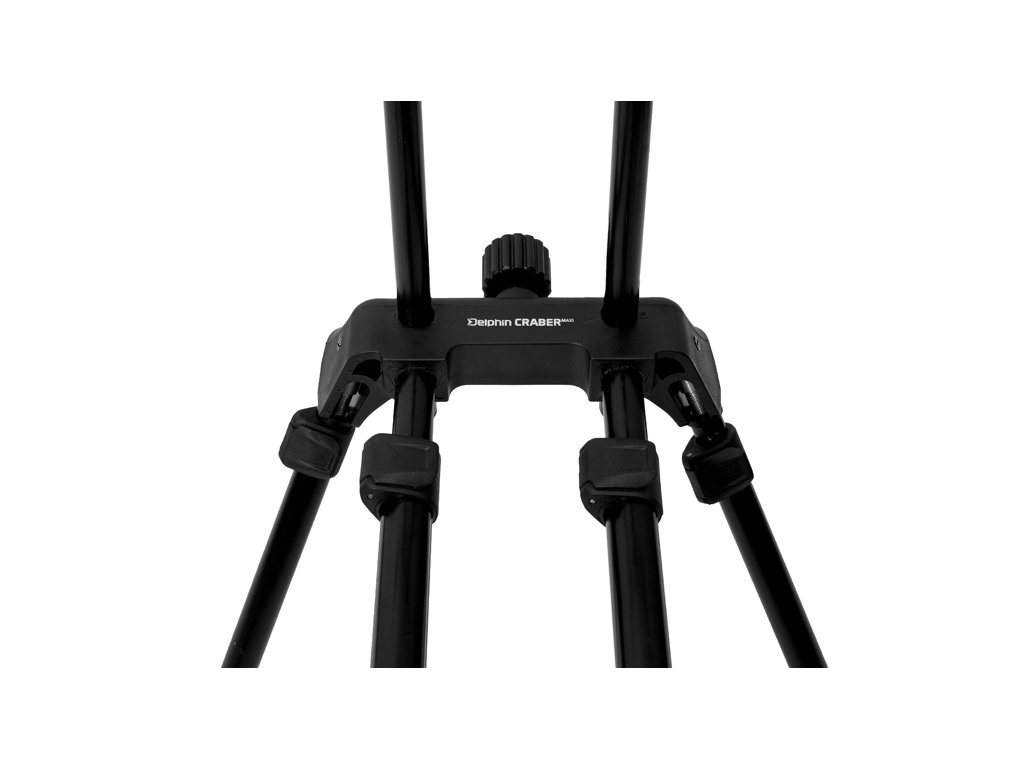 Delphin Craber Maxi je rodpod kompaktných rozmerov, ktorý vás milo prekvapí jeho všetrannosťou. Jeho rozmery je možné prispôsobiť podľa podmienok pri love, a preto je možné ho označiť ako všestranného pomocníka na všetky typy vôd. Spoľahlivo poslúži na malých zarastených vodách, ale aj na veľkých otvorených vodných plochách, kde je potrebné sa dokonale prispôsobiť danému lovnému miestu. Vďaka čiernej farbe dokonale zapadne do okolitého prostredia. Vyznačuje sa pevnou a veľmi stabilnou konštrukciou, ktorá vyniká svojou nízkou hmotnosťou. Jeho transportné rozmery ho predurčujú nato, aby mohol byť prenášaný vo vašej rybárskej taške a v ochrannom textilnom púzdre, ktoré je aj súčasťou balenia. Nastavenie výšky hrazdy je možné pomocou skrutiek na oboch stranách. Nohy sú teleskopické a je možné nastaviť ich sklon do troch rôznych polôh. Celý rodpod je vyrobený z hliníkových profilov, ktoré sú spájané spojkami z veľmi odolného ABS plastu. To prispieva aj k dlhej životnosti CRABERA. Odteraz sa nebudete musieť rozhodovať, ktorý rodpod si vezmete so sebou na ryby!K rodpodu je možné ako dlhé/náhradné nohy použiť samostatne predávané, univerzálne rázsošky SimpleSTICK.