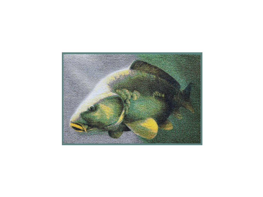 Excelentná rohož s výrazným 3D motívom kapra plávajúceho pod vodnou hladinou. Určite poteší každého rybára.Táto rohož je vyrobená z odolného materiálu, okraj je obšitý tmavo zeleným šitím a zo spodnej časti je ošetrená latexovou vrstvou. Rozmer 60x40 cm je veľmi kompaktný a hodí sa pred všetky vstupné dvere. Ukážte návšteve už pri vchode kto je doma pánom :)Dodatočné parametre