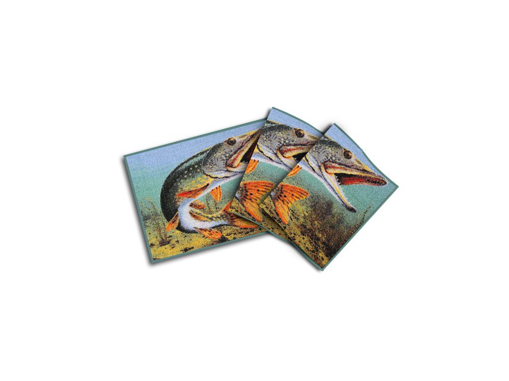 Excelentná rohož s výrazným, plnofarebným 3D motívom šťuky plávajúcej pod vodnou hladinou. Určite poteší každého rybára.Táto rohož je vyrobená z odolného materiálu, okraj je obšitý tmavo zeleným šitím a zo spodnej časti je ošetrená latexovou vrstvou. Rozmer 60x40 cm je veľmi kompaktný a hodí sa pred všetky vstupné dvere. Ukážte návšteve už pri vchode kto je doma pánom :)Dodatočné parametre