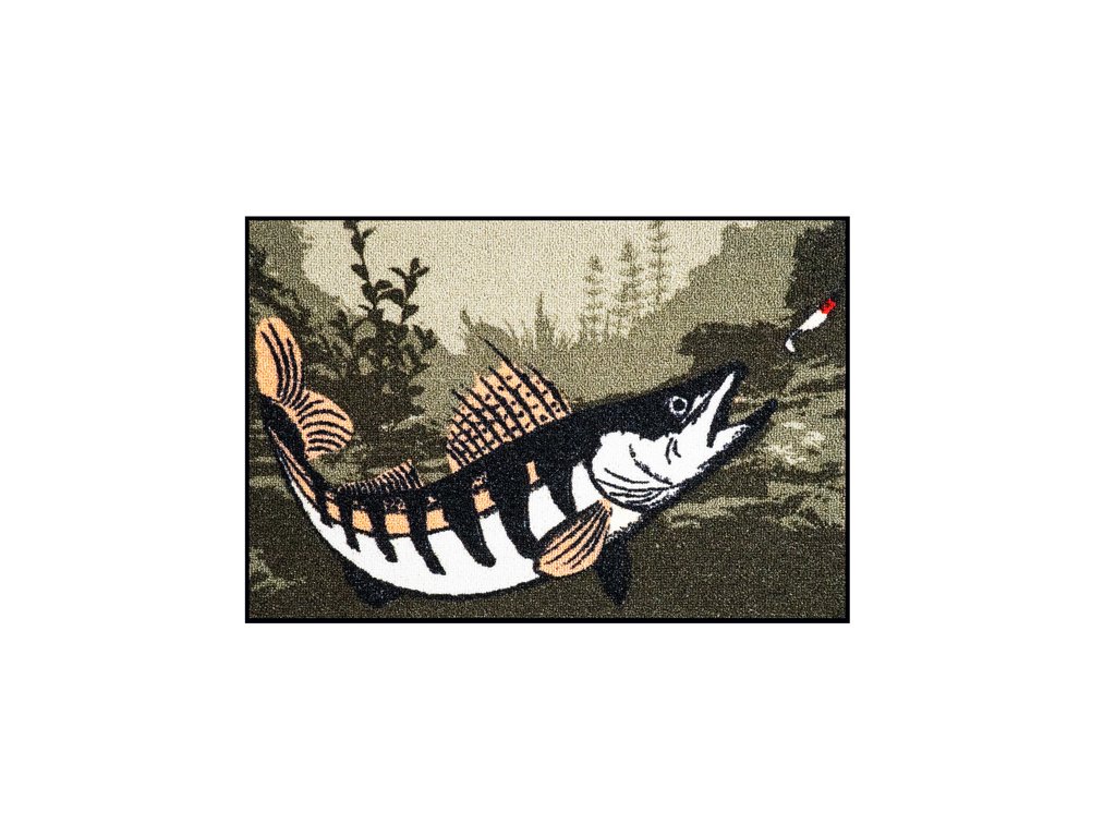 Excelentná rohož CatchMe! ZUBÁČ. Určite poteší každého rybára. Táto rohož je vyrobená z odolného materiálu, okraj je obšitý hnedým šitím a zo spodnej časti je ošetrená latexovou vrstvou. Rozmer 60x40 cm je veľmi kompaktný a hodí sa pred všetky vstupné dvere. Ukážte návšteve už pri vchode kto je doma pánom :) Unikátny dizajn zobrazujúci zubáča určite zahreje srdce nejedného prívlačiara.Dodatočné parametre