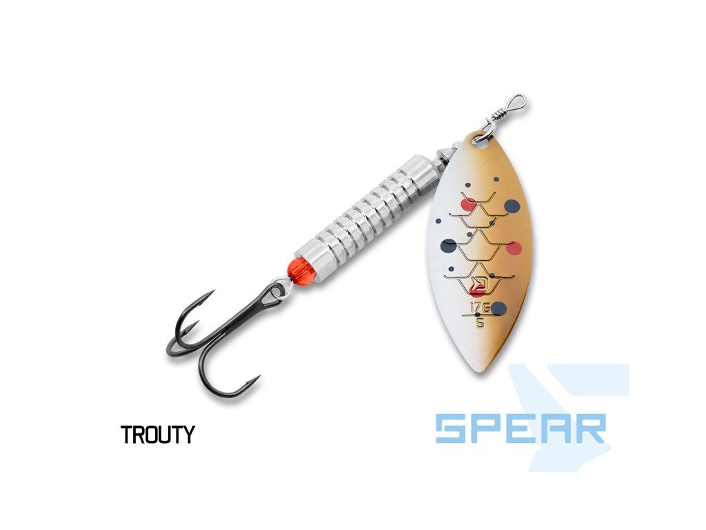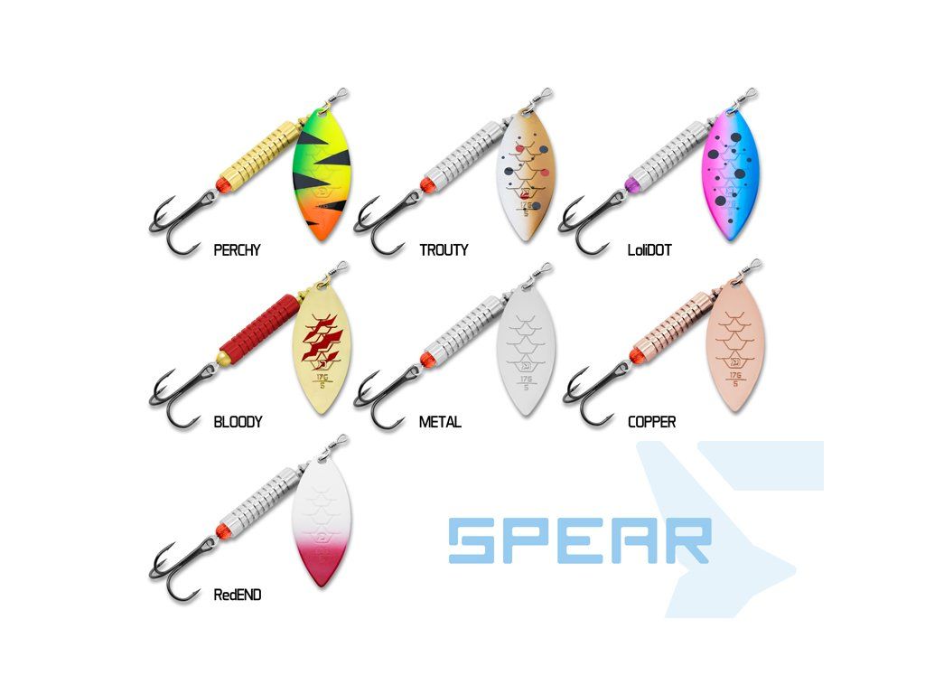 Je ideálnou nástrahou na lov širokého spektra dravých rýb. Kvalitné spracovanie, dráždivý pohyb a intenzívne vibrácie nenechajú v pokoji žiadneho dravca. Model SPEAR sa vyznačuje predĺženým vŕbovým listom ideálnym pre použitie v tečúcich vodách ako sú rieky a potoky.Precízne vyvážené telo a ľahko rotujúci list umožňuje dokonalý pohyb rotačky aj pri pomalom vedení nástrahy. Nástraha je opatrená kvalitným trojháčikom pre dokonalý zásek a dobre drží počas súboja s bojovnými rybami.