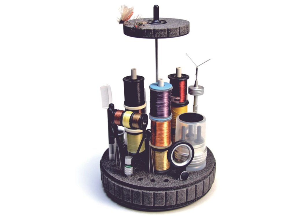 - The Tool Foam spins for easy access to tools that you need - Temporary Hanger is for finished flies and material storage - Thread spools can be stored on three Bobbin Shafts