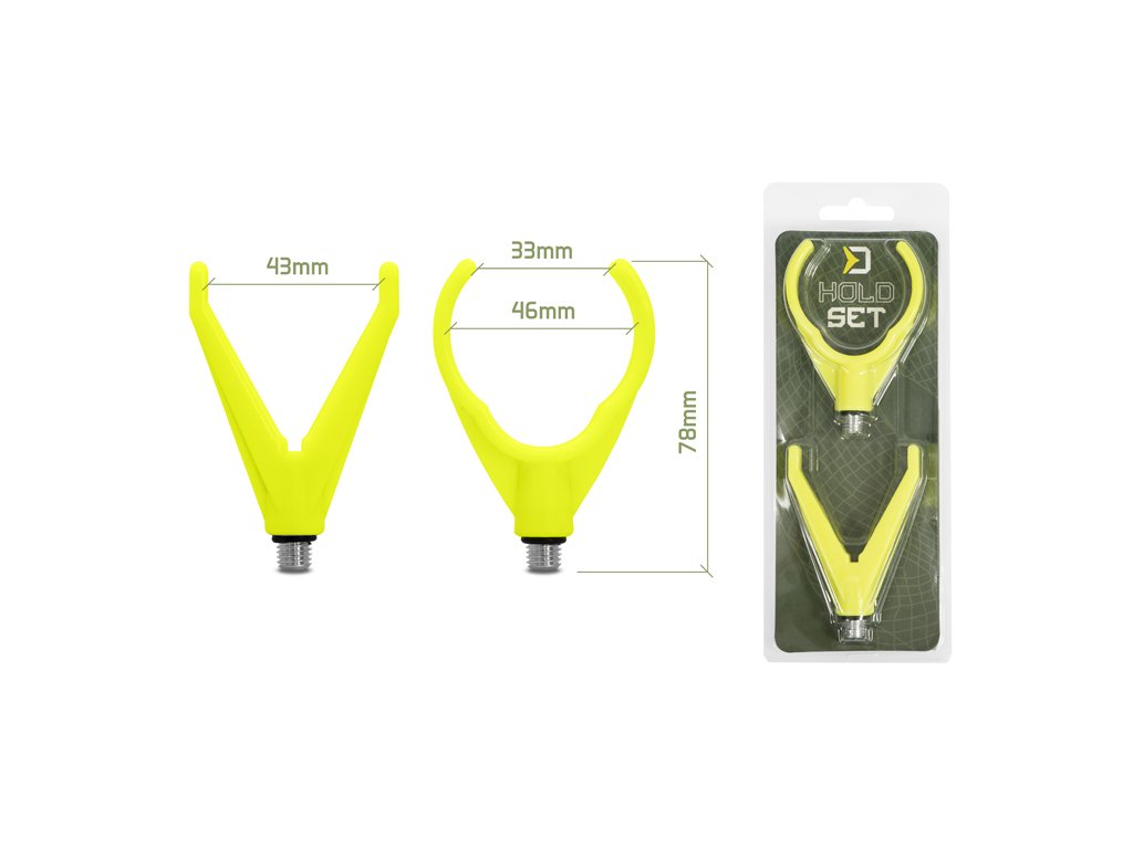 Sada držiakov prúta, pozostávajúca z predného a zadného držiaka s univerzálnym závitom, pre prichytenie k akýmkoľvek rázsoškám či stojanom. Držiaky sú vhodné najmä pre feedristov, ale aj rybárov, ktorí radi lovia na položenú či plávanú.HoldSET je vyrobený z odolného plastového materiálu a vďaka svojej praktickosti a cene ho ocenia ako začiatočníci tak skúsení rybári. Zadný držiak, navrhnutý v tvare písmena U, umožňuje bezpečné uloženie prútov s rôznymi priemermi rukovätí. Predný držiak v tvare písmena V je opatrený drážkou, pre plynulý prechod vlasca počas záberu.