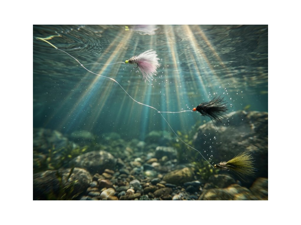 Je sada umelých mušiek prírodných vzorov napodobňujúcich prirodzenú potravu pstruhov ako sú larvy vážok, pijavice či rybí poter. Mušky sú účinné pri love divokých rýb, no rovnako dobre s nimi odlovíte aj nasadené pstruhy, ktoré sa po čase stávajú odolné voči výrazným a lesklým vzorom.Mušky sú vhodné na aktívny spôsob lovu, pri ktorom sa oživujú sťahovaním šnúry. Dlhý pohyblivý chvostík, jemné perie a chĺpky reagujú aj na najmenší pohyb, čím veľmi účinne provokujú ryby k záberu. Okrem použitia s muškárskou šnúrou ich možno skombinovať aj s prívlačovým prútom, a to v spojení so sbirolínom či bublinou.