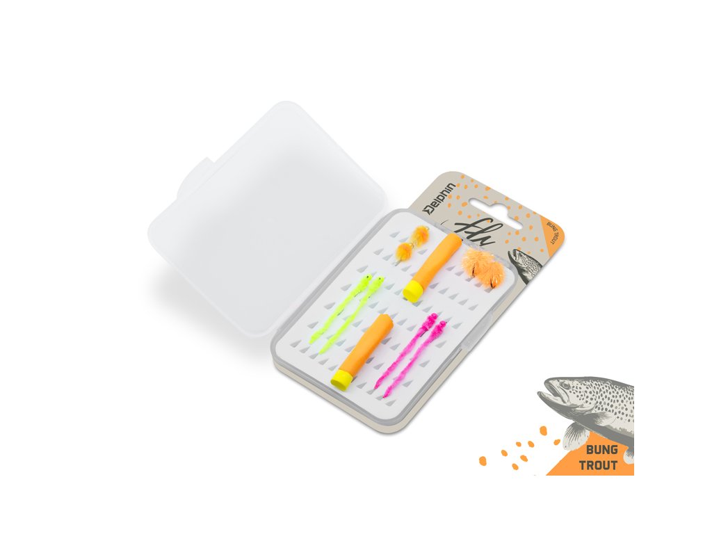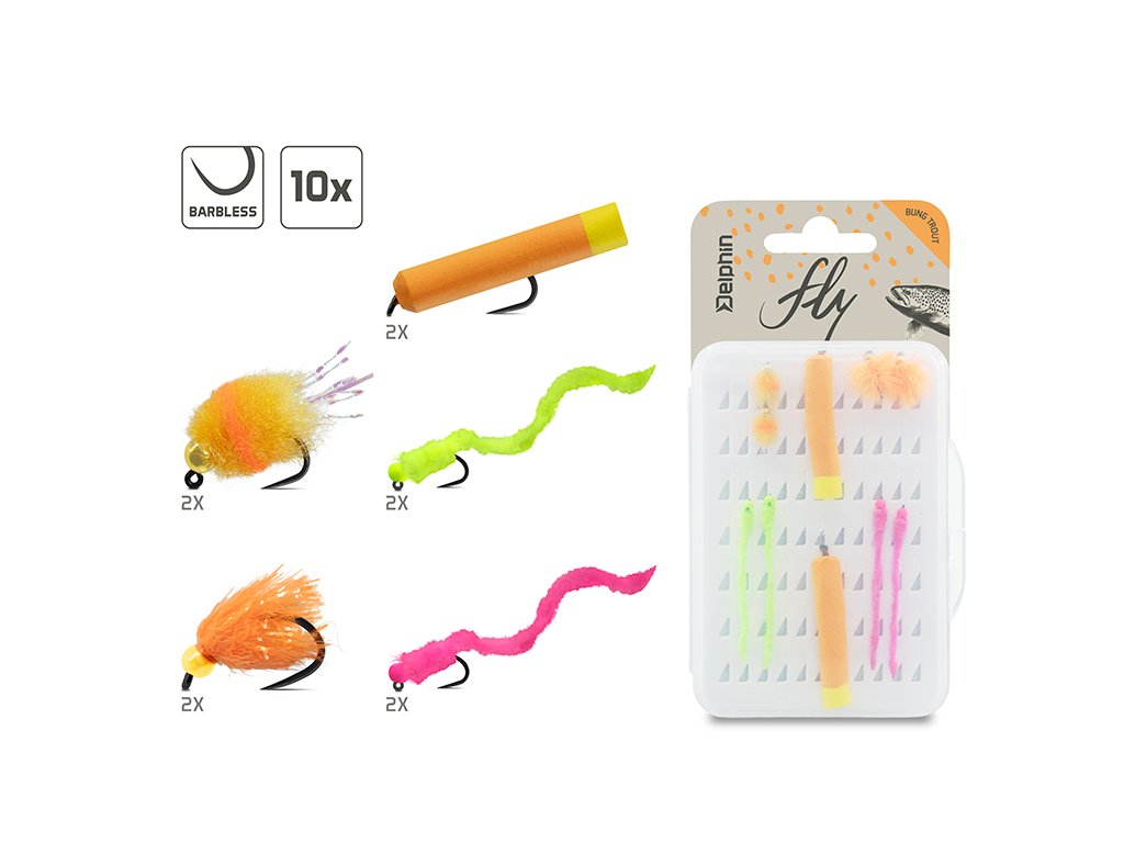 Sada umelých mušiek, ktoré sú určené na statický lov pomocou plávajúcich šnúr, kedy ryby neochotne reagujú na pohyblivé nástrahy. Sada obsahuje desať mušiek v piatich overených vzoroch napodobňujúcich ikry a červy, ktoré sú prirodzenou potravou lososovitých rýb. Vďaka výrazným farbám skvele fungujú na čerstvo nasadené ryby, neraz však oklamú aj zvedavú divokú rybu.Sada obsahuje aj penovú mušku ktorá slúži ako plávajúci indikátor záberu. Táto sa naväzuje ako prvá v poradí od šnúry a slúži ako plavák pre podvesenie ostatných zaťažených mušiek. Pri love s viacerými muškami odporúčame rozostup aspoň 50cm pre pokrytie rôznych vrstiev vodného stĺpca.