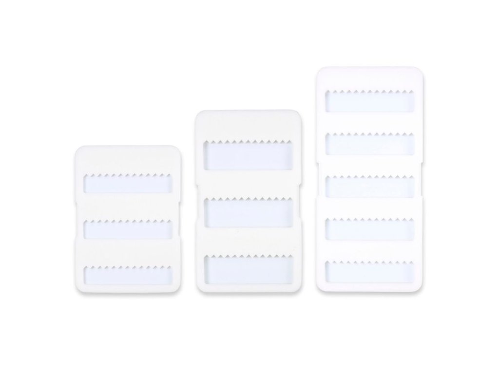 - Malý: hrúbka 5 mm/0,2 palca - Stredné a veľké: 8 mm/0,31 palca hrúbky - Veľké / 13 štrbín 4 rady (52 mušiek) - Stredná / 13 štrbín 3 rady(39 mušiek) - Malé / 13 štrbín 3 rady (39 mušiek)