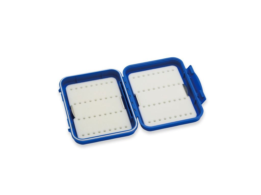 Jasne modré puzdro na mušky s dvoma penami systému tarpon na morské strímre.