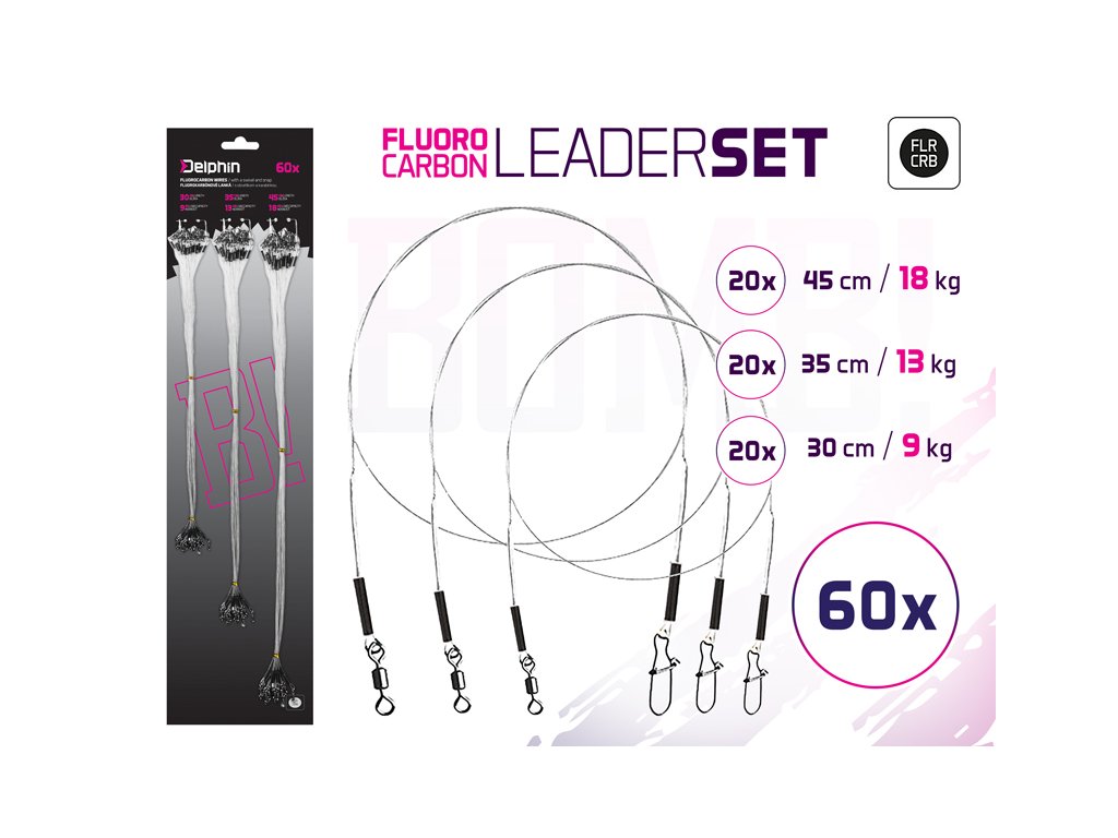 Set fluorokarb. laniek BOMB! S obratl. a karab.Výhodný set pozostávajúci z obľúbených dĺžok a nosností laniek, z pomedzi ktorých si vyberiete vždy to správne na danú situáciu počas lovu dravých rýb.
