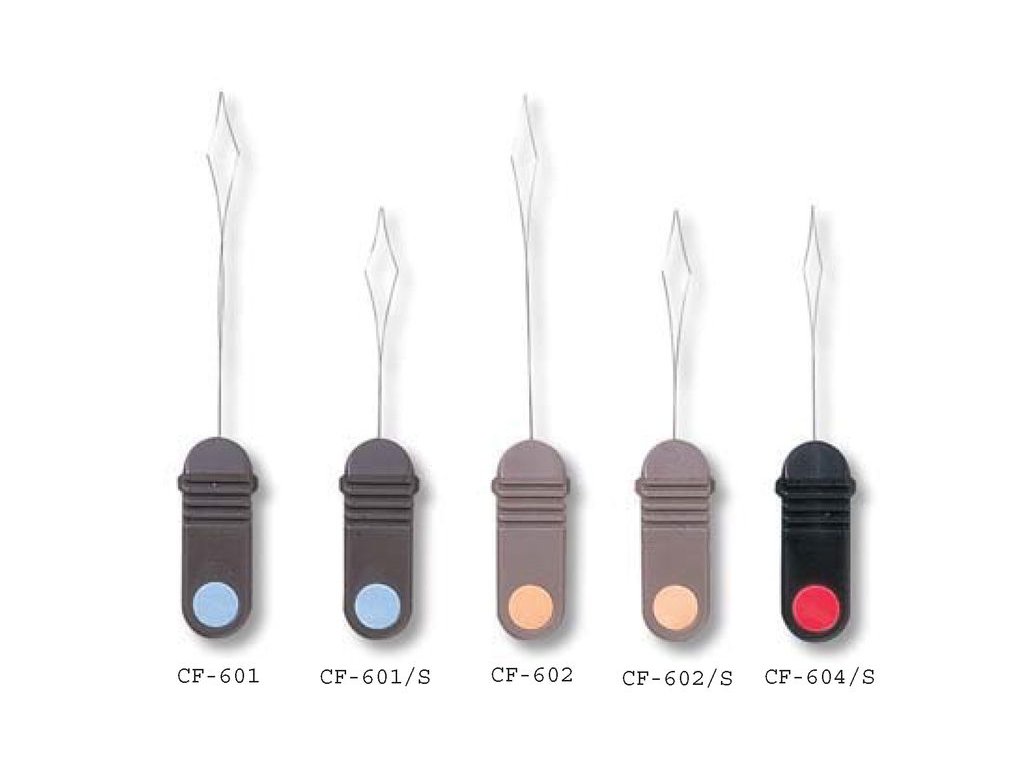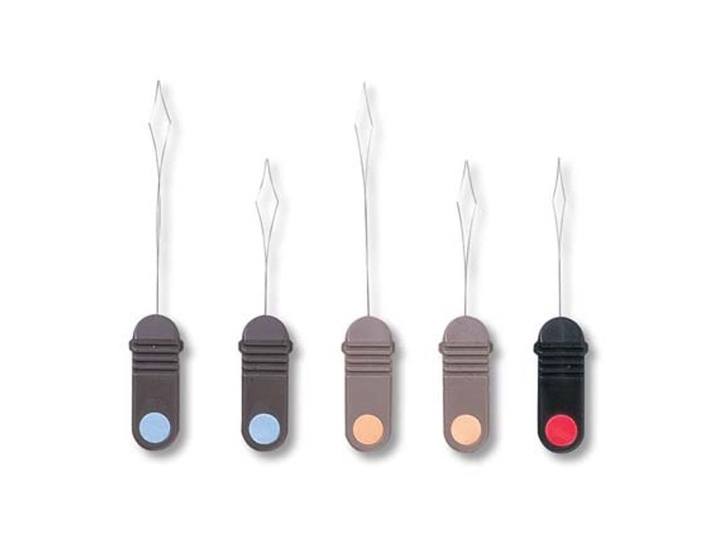 K dispozícii sú štandardné a krátke verzie. Vložte navliekací drôt z hornej časti mušieho oka. Vložte vlasec koniec do slučky navliekača a opatrne pretiahnite mušku. Uviažte svoj obľúbený uzol.