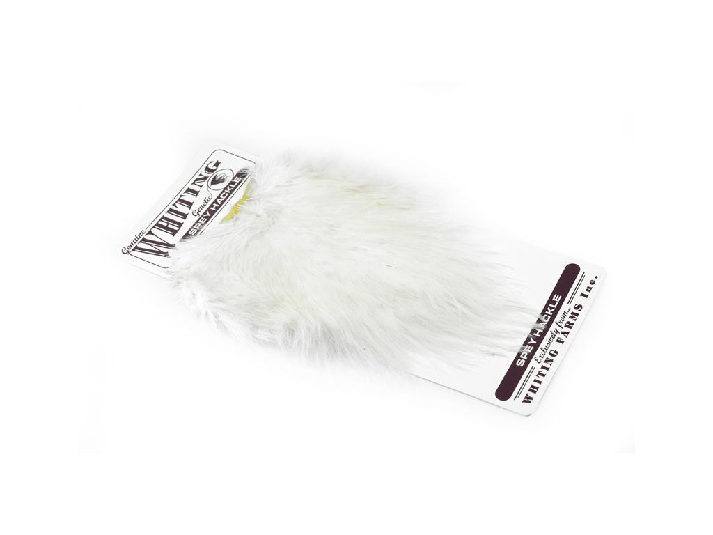 Spey and Dee flies demand a unique type of feather to create their swept back profiles and flowing movement in swift water. Initially "Spey Cock" feathers from special roosters of the Spey River Valley in Scotland from which both fly and chicken derived their name, provided ideal feathers to tie Spey and Dee flies. But the already obscure Spey Cock stock dwindled into oblivion in the early 20th century, or at least their numbers became insufficient to perpetuate this specific line of fowl. Furthermore, the use of feathers from various European and Asian heron species came into vogue in Spey, Dee and other salmon flies, de-emphasizing the use of Spey Cock feathers which also contributed to their demise. With the advent of legal protection of heron species, especially in North America, the search for suitable substitutes for heron feathers led to a number of other species and types of feathers being tried. Particular heron substitutes have included rooster schlappen and coque feathers, Ring-Necked Pheasant and Blue Eared Pheasant "rump" saddle feathers, bleached goose shoulder and various duck flank feathers. All these substitues have been used with varying success and are in themselves a testament to the ingenuity and creativity of Spey fly tiers. But what worked best; Spey Cock and Heron, was what was actually sought, not the substitute. Instigating a number of genetic avenues, development proceeded towards a "genetic" Spey Hackle, which then became available after about 5 years of initial selection work. Feather characteristics sought included long, substantial barbs, absence of any webbing between the barbs, non brittleness of the entire feather and excellent density for good value. In addition to a pure white, which is deal for dying, an array of other color and pattern genes were incorporated into this "genetic" Spey hackle stock. Thus new and unusual feather colors and patterns would be available to encourage the inherent creativity of fly tiers. A wide range of feather sizes will also be available from these "genetic" Spey hackle chicken, thus allowing an even wider range of fly sizes to be tied.