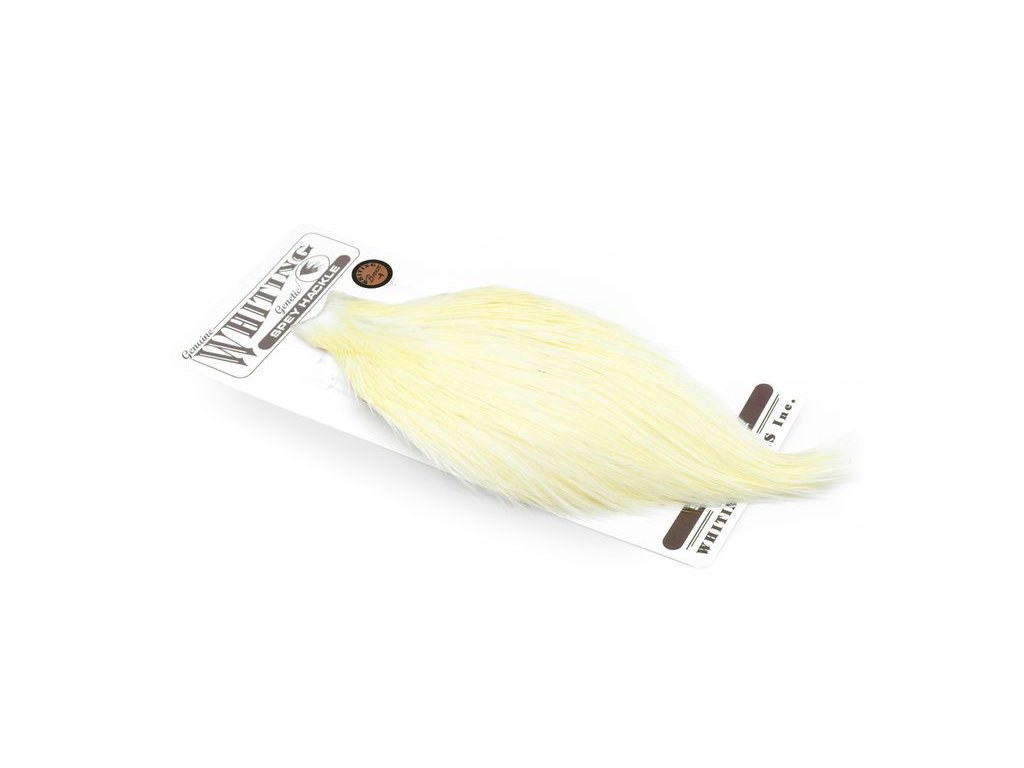 Spey and Dee flies demand a unique type of feather to create their swept back profiles and flowing movement in swift water. Initially "Spey Cock" feathers from special roosters of the Spey River Valley in Scotland from which both fly and chicken derived their name, provided ideal feathers to tie Spey and Dee flies. But the already obscure Spey Cock stock dwindled into oblivion in the early 20th century, or at least their numbers became insufficient to perpetuate this specific line of fowl. Furthermore, the use of feathers from various European and Asian heron species came into vogue in Spey, Dee and other salmon flies, de-emphasizing the use of Spey Cock feathers which also contributed to their demise. With the advent of legal protection of heron species, especially in North America, the search for suitable substitutes for heron feathers led to a number of other species and types of feathers being tried. Particular heron substitutes have included rooster schlappen and coque feathers, Ring-Necked Pheasant and Blue Eared Pheasant "rump" saddle feathers, bleached goose shoulder and various duck flank feathers. All these substitues have been used with varying success and are in themselves a testament to the ingenuity and creativity of Spey fly tiers. But what worked best; Spey Cock and Heron, was what was actually sought, not the substitute. Instigating a number of genetic avenues, development proceeded towards a "genetic" Spey Hackle, which then became available after about 5 years of initial selection work. Feather characteristics sought included long, substantial barbs, absence of any webbing between the barbs, non brittleness of the entire feather and excellent density for good value. In addition to a pure white, which is deal for dying, an array of other color and pattern genes were incorporated into this "genetic" Spey hackle stock. Thus new and unusual feather colors and patterns would be available to encourage the inherent creativity of fly tiers. A wide range of feather sizes will also be available from these "genetic" Spey hackle chicken, thus allowing an even wider range of fly sizes to be tied.