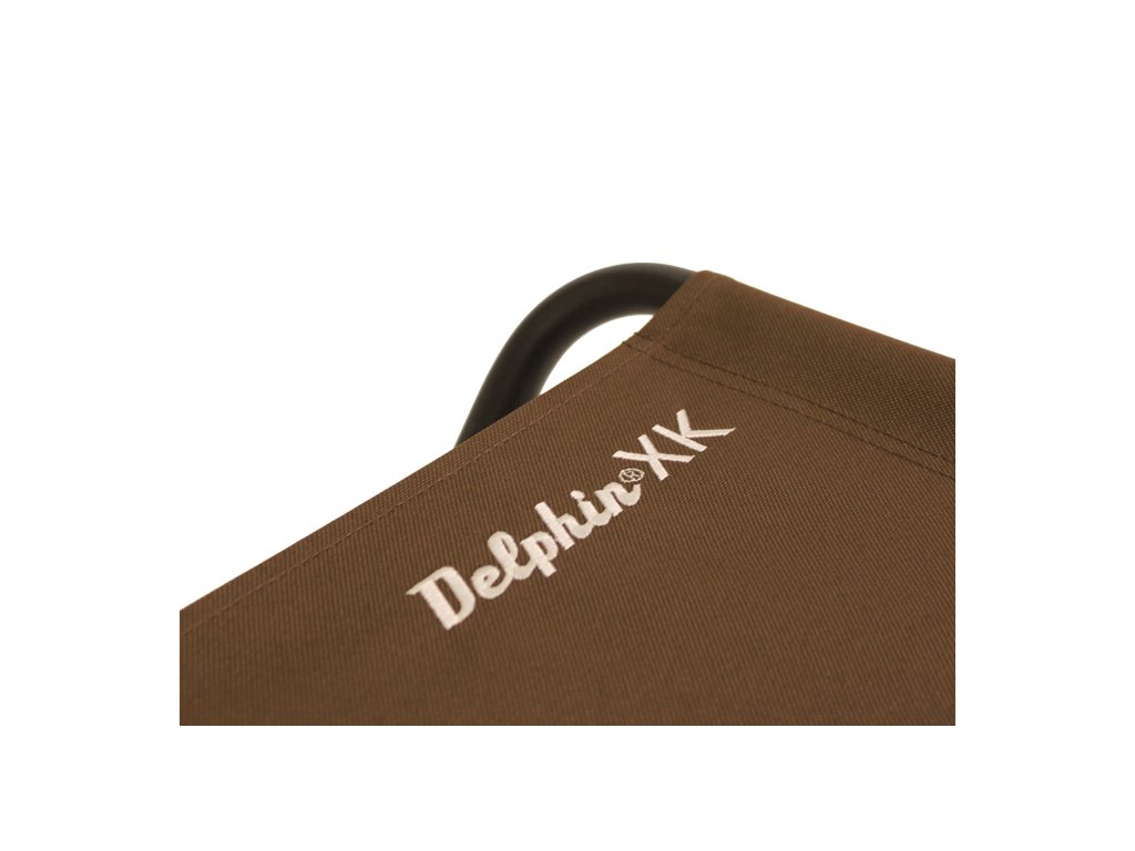 Delphin XK patrí do kategórie jednoduchých a prenosných stoličiek. Na výrobu bol použitý 19mm hrubostenný profil, ktorý zabezpečuje stabilitu a nosnosť. Profily sú povrchovo farbené práškovou farbou, ktorá ponúka vynikajúcu ochranu proti korózii, opotrebovaniu a agresívnemu prostrediu. Spodná časť konštrukcie je chránená plastovými “nárazníkmi”, ktoré tlmia kontakt medzi povrchom zeme a konštrukciou. Látková časť je vyrobená z hrubej, impregnovanej látky, ktorá je dva krát prešívaná.Technické parametre: