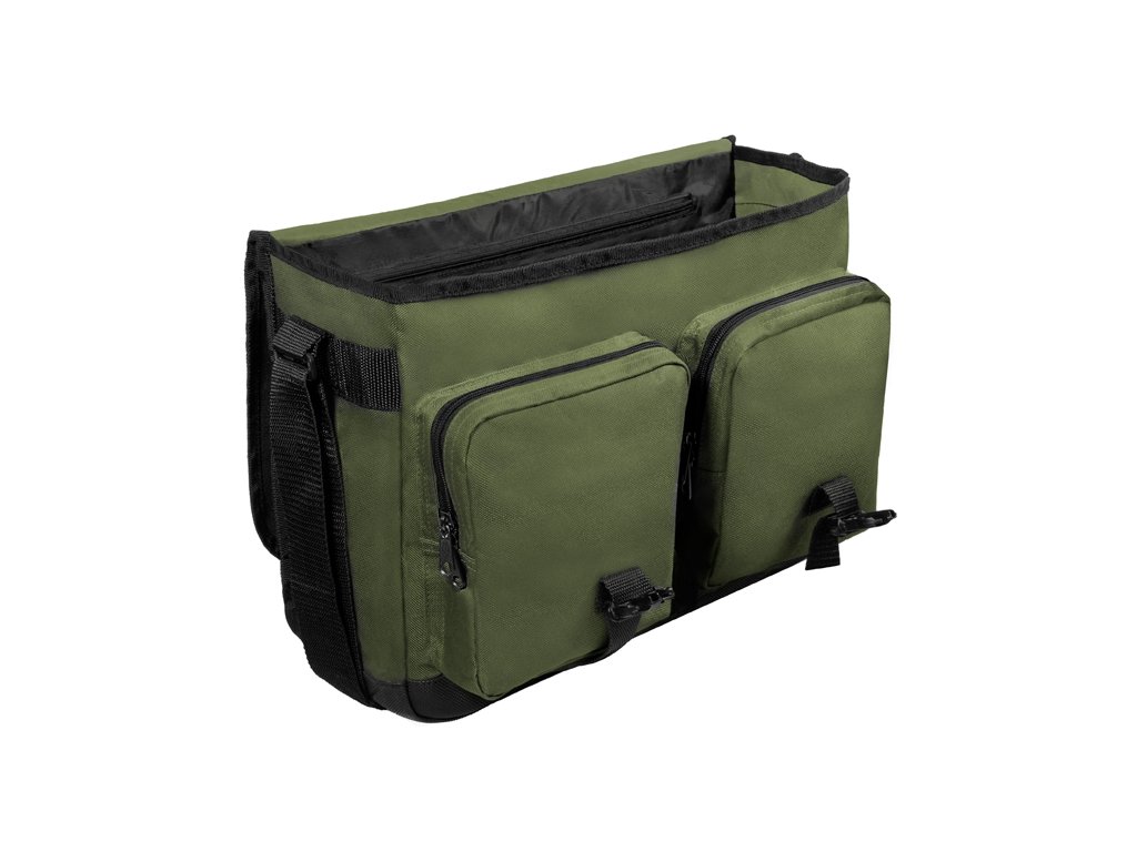 Univerzálna a praktická “cross body“ taška vhodná pre všetkých rybárov, poľovníkov ale taktiež na bežné využitie, či už ju budete nosiť do práce, školy alebo na nákupy. Hlavný vnútorný priestor poskytuje dostatok miesta na uschovanie a prenos rôzneho príslušenstva. Navyše je v ňom aj druhé- zipsovateľné, čierne vrecko, vďaka ktorému viete veci vo vnútri tašky efektívne odseparovať. CLASSA CrossBody disponuje v prednej časti taktiež dvoma samostatnými vreckami, ktoré sú opatrené kvalitnými dvojzipsami. Taška je navrhnutá v tmavozelenej farbe v kombinácii s čiernymi prvkami ako klipy, zipsy, ramenný popruh, či efektné logo. Celá spodná časť a boky do výšky 5 cm sú opatrené kvalitným nepremokavým materiálom. Nehrozí tak znečistenie a následne znehodnotenie produktu pri položení napríklad na mokrú alebo špinavú zem. Vďaka svojej univerzálnosti a spratnosti si nájde uplatnenie a priaznivcov v rôznych sférach.Technické parametre: