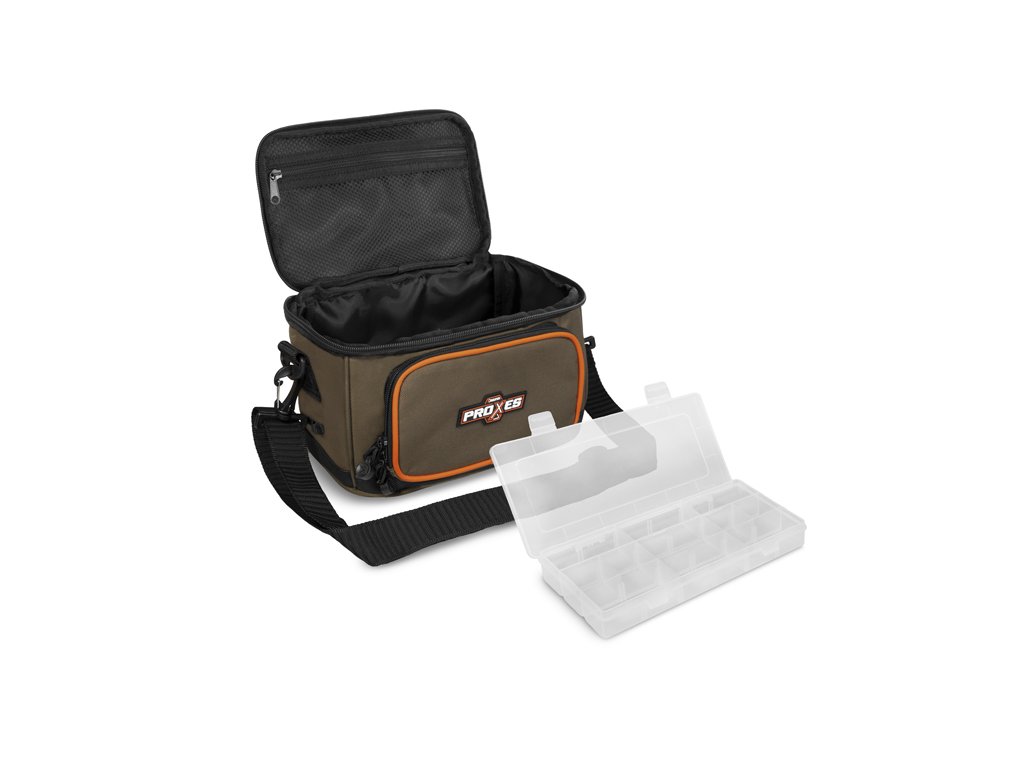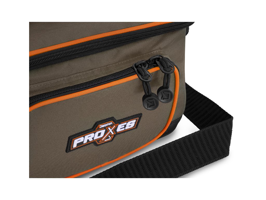 Delphin PROXES Easy L je kompaktná praktická taška, ktorej univerzálnosť a prevedenie ocenia najmä priaznivci prívlače, feedru či plávanej.Easy L, ale aj iné produkty zo série PROXES sú špecifické kvalitným prevedením, vysokou praktickosťou, 100% funkčnosťou a to všetko za veľmi príjemnú obstarávaciu cenu. Farebná kombinácia série PROXES poskytuje decentný vzhľad ladiaci s prírodou. Oranžové lemy predstavujú príjemný kontrast a zároveň poskytujú lepšiu viditeľnosť za nepriaznivých poveternostných podmienok alebo za šera.