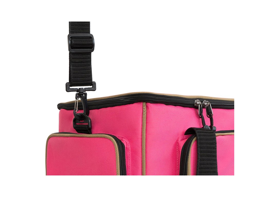 Taška Delphin Queen Carry je ďalšia taška z našej série QUEEN, ktorá poteší nejednu rybárku. Táto veľká praktická taška umožňuje transport oblečenia a rybárskeho vybavenia potrebného na úspešný lov. Taška však určite nájde svoje využitie aj pri bežnom nosení alebo cestovaní.Taška je navrhnutá s ohľadom na univerzálnosť, praktickosť a odolnosť voči nepriazňam počasia. Taška je zvnútra zo všetkých strán osadená 6mm polstrovaním pre maximálnu ochranu Vášho vybavenia. Taška je navyše ušitá z kvalitnej a ľahkej látky odpudzujúcej vodu. Celá spodná časť tašky je osadená a vystužená 5cm vysokou, nepremokavou vrstvou, ktorá zabezpečí, že vaša výbava ostane v suchu. Celá taška je vďaka tomu mimoriadne stabilná a drží svoj tvar, aj keď je prázdna. Tašku sme okrem hlavného úložného priestoru vybavili aj menšími zipsovateľnými priestormi po stranách a na prednej strane tašky. Na veku tašky sa navyše nachádza zipsovateľné sieťové vrecko. Hlavný úložný priestor tašky je navrhnutý tak, aby doň bolo možné ukladať ďalšie menšie EVA alebo aj látkové tašky. Taška je vybavená kvalitnými zipsami, ktoré sú vybavené plastovými ťaháčikmi s logom Delphin pre jednoduché uchopenie. Nevyhnutnosťou je popruh pre pohodlné nosenie cez rameno a praktické rukoväte pre nosenie tašky v ruke.