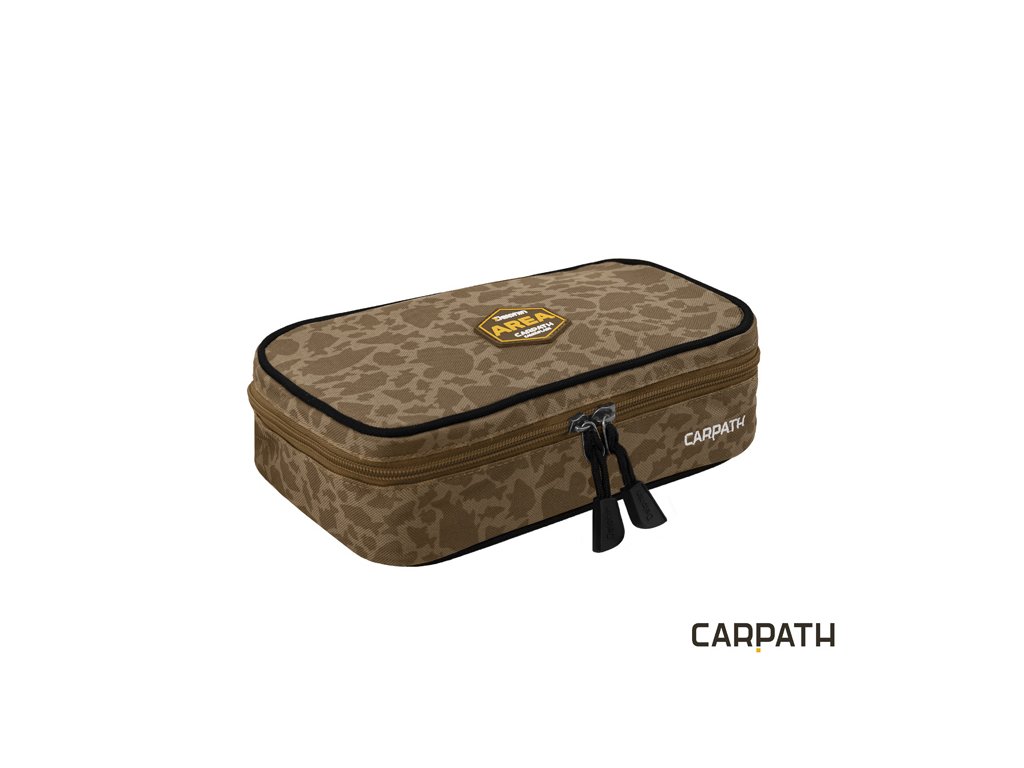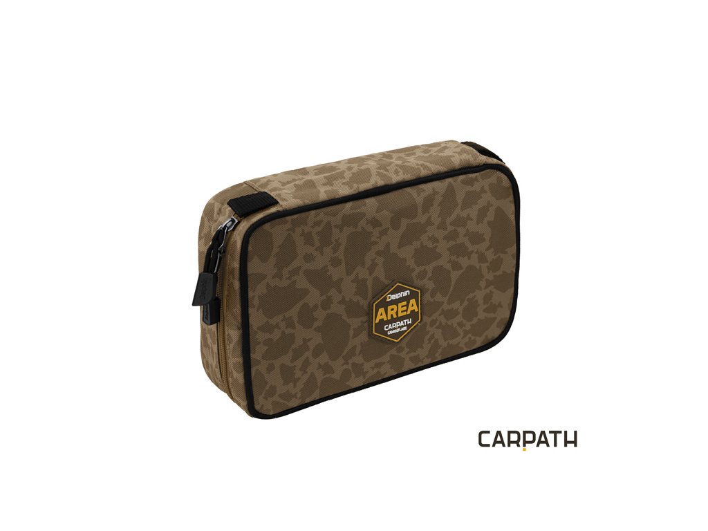 Delphin Area NICE Carpath je taška určená predovšetkým na hygienické potreby. Odteraz môžete nosiť všetko svoje hygienické vybavenie v jednej taške a mať ho vždy poruke. Taška je vybavená praktickým popruhom na suchý zips, ktorý je doplnený o plastový háčik. To umožňuje zavesenie tašky v bivaku, alebo na kmeň či konár stromu a podobne. Na opačnom konci sme umiestnili popruh na suchý zips, ktorý prevlečiete stredom rolky toaletného papiera a spojíte. Následne viete tento toaletný papier bez problémov odvíjať. Vo vnútri sa nachádza vrecko na toaletný papier a ďalšie praktické odkladacie priestory, ktoré sú uzatvárateľné zipsom. V strednej časti sa nachádzajú 3 prepážky, do ktorých si viete uložiť napríklad hrebeň, pinzetu, nožnice a iné. Nájdeme tu aj malé zrkadlo (5.5x8cm), ktoré je vybavené plastovou krytkou a pripevnené je k taštičke prostredníctvom suchého zipsu, a v prípade potreby si ho viete vybrať. Na vonkašej strane je taška vybavená pútkom pre jednoduchšie nosenie.Taška je vybavená kvalitnými zipsami. Vonkajšie zipsy sú vybavené plastovým ťaháčikom, ktorý je na konci rozšírený, a preto je možné ho jednoducho uchopiť a tašku rýchlo otvoriť. Dizajn tašky dopĺňa naša jedinečná hnedá CARPATH kamufláž so siluetami kaprov.