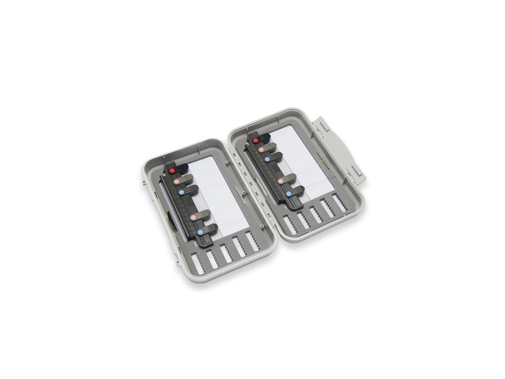 - Jednoducho zdvihnite držiak navliekača, prestrčte vlasec cez navliekač a vytiahnite mušku, aby ste vložili vlasec. - Nie je potrebné odstraňovať závitník z puzdra na mušky - Pridaním každého náhradného navliekača (predáva sa samostatne) môžete nosiť viac druhov mušiek - K dispozícii v malej, strednej a veľkej veľkosti