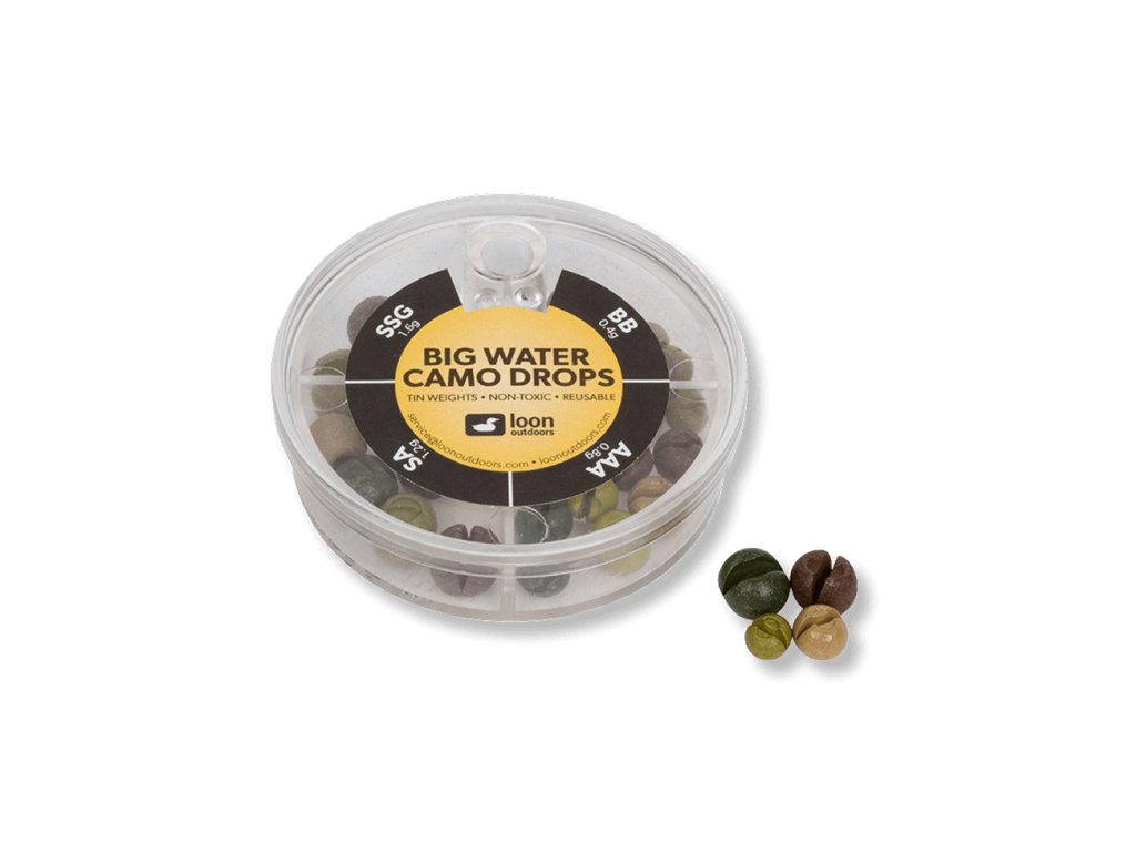 Available in either camo or black, these non-toxic, tin weights are coated with a durable matte finish that both adds to longevity and keeps the weight from sliding on the line. The natural colors and subtle mottled texture won't scare spooky fish the way that glossy weights will. The double-cut design makes these weights easily adjustable and truly re-usable, as they don't require a special tool to open them and remove them from leader. Both the Camo Drops and Black Drops come in 9 different sizes, as well as four different multi-packs. The individual twist pots conveniently dispense single weights, and are easily refilled.