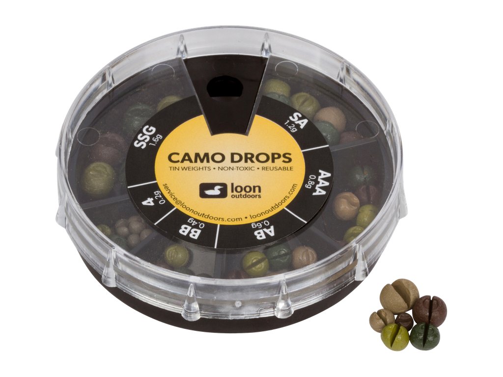 Available in either camo or black, these non-toxic, tin weights are coated with a durable matte finish that both adds to longevity and keeps the weight from sliding on the line. The natural colors and subtle mottled texture won't scare spooky fish the way that glossy weights will. The double-cut design makes these weights easily adjustable and truly re-usable, as they don't require a special tool to open them and remove them from leader. Both the Camo Drops and Black Drops come in 9 different sizes, as well as four different multi-packs. The individual twist pots conveniently dispense single weights, and are easily refilled.