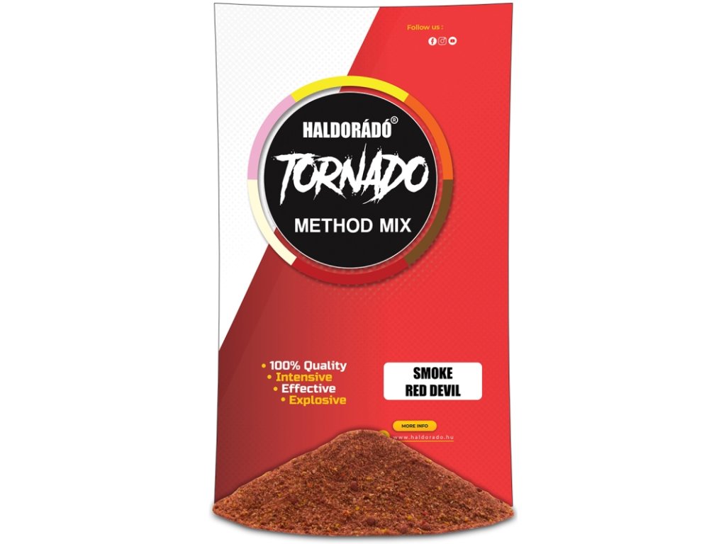 TORNADO Method MIX je nový rad nástrah od spoločnosti Haldorado vyrobených unikátnou výrobnou technológiou, optimalizovanou špeciálne pre lov kaprov. Obstojí aj v extrémnych situáciách a konkurenčných podmienkach! Chuť nástrah je identická s bežnými výrobkami TORNADO. Balenie obsahuje jemnozrnné, dym vytvárajúce Method Mixy vo vode, ale každá z nich je úplne iná! Mení sa nielen vôňa a farby. Každá nádoba obsahuje úplne iné zložky pre dosiahnutie čo najlepšieho účinku! Každé vrecko obsahuje malú kapsičku s farebnými, chutnými drobnými zrniečkami peliet. Tie môže rybár pridávať do základu v závislosti od nálady rýb. Odporúčané použitie: 1. Na krmivo nalejte 3 decilitre vody (presne odmerajte!) a premiešajte. Nechajte krmivo niekoľko minút odpočívať a potom ho prepasírujte cez malé sitko. 2. Teraz v prípade potreby primiešajte farebné pelety! 3. V prípade potreby vmiešajte do krmiva korenie. Ak lovíte vo vode hlbšej ako 2 metre alebo musíte dlho čakať (až 15 minút) na zábery, pridajte ešte trochu vody, maximálne 0,5 dl, aby bolo krmivo lepivejšie. 4. Celý deň budete cítiť, aké je krmivo hodvábne a akú má dobrú konzistenciu. Krmivo sa ľahko používa, má dobrú priľnavosť, ale rýchlo sa rozpúšťa, je to profesionálna metóda miešania!