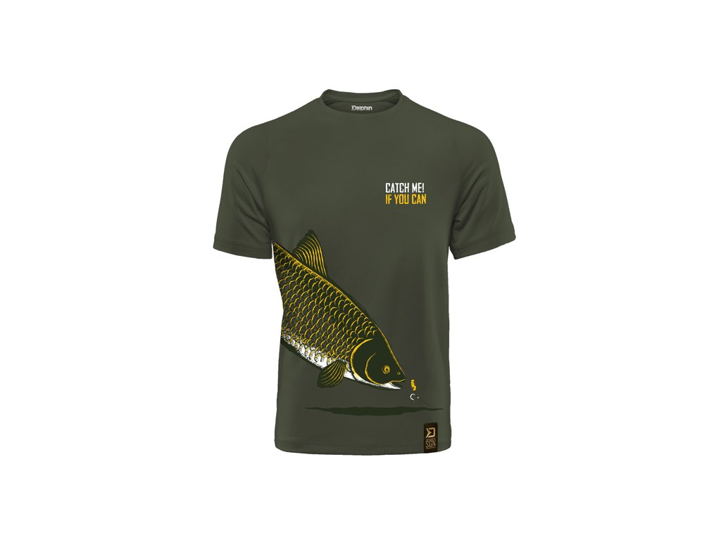 Séria štýlových a pohodlných tričiek s vyobrazením rýb, vhodných nie len na ryby, ale taktiež k bežnému noseniu. CATCH ME IF YOU CAN (chyť ma ak to dokážeš) sa nepochybne stane jedinečným kúskom každého rybárskeho šatníka, vďaka ktorému sa pri vode odlíšite.Tričko Catch me! AMUR je dizajnované v tmavo zelenej farbe s vyobrazením kŕmiaceho sa amura, čo určite poteší priaznivcov lovu týchto rýb.