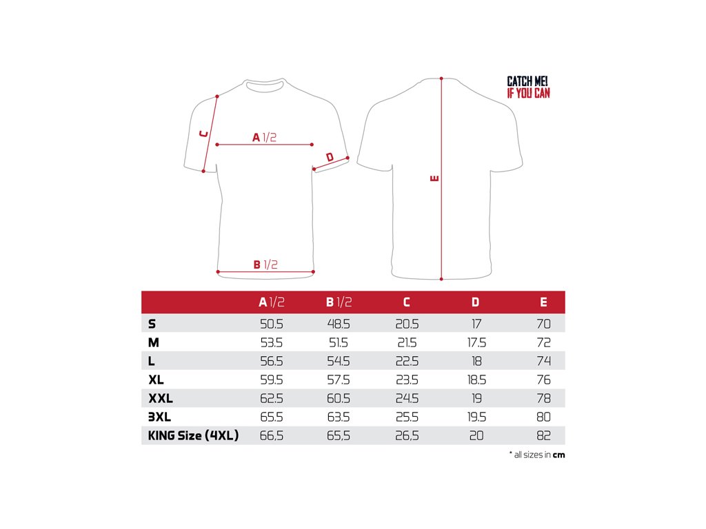 Samotné tričko je vysokej kvality, rovnako ako použitá farebná tlač. Ponúkame ich v širokej škále veľkostí od S, až po KING SIZE (ekvivalent 4+XL, ktorý je vo väčšine krajín označovaný ako XXXXXL). Model King size teda hravo oblečie aj tých najstatnejších rybárov s hmotnosťou 135kg+.