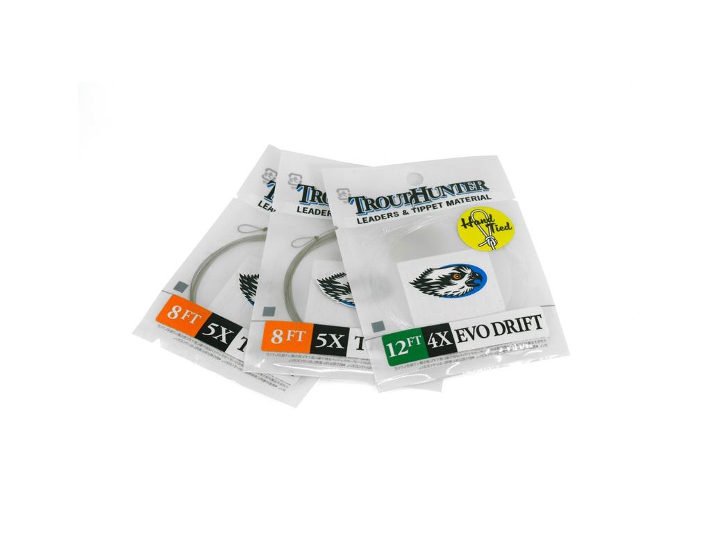 The new standard in leaders! These leaders come with loops that are far superior to any other loops available on the market. TroutHunter's perfection loops are created smaller than the competition and sealed so they will easily travel through rod guides and match nicely with welded fly line loops. EVO Drift are the ultimate in leaders. The improved performance is achieved through the application of our EVO coating to our leader material. EVO coating results in much stronger knot strengths with no noticeable increase in diameter. EVO also adds a measure of durability in combating abrasion and repels water. Memory is nearly non-existent and the leaders are tapered to provide strong turn over and produce drag free drifts over the most technical fish. The result is a family of leaders which will excel at dry fly fishing in all situations. Available as 9’ and 12’ leaders.