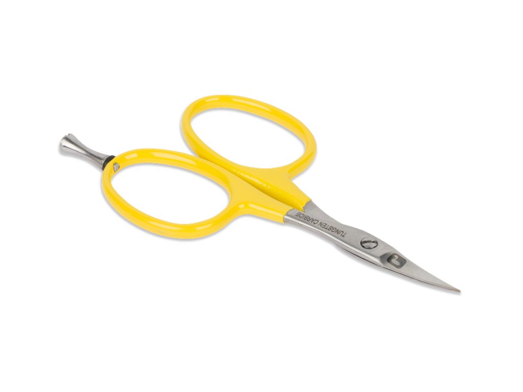 A slightly curved pair of precision fly tying scissors that will last forever. The marriage of delicate and robust, these tying scissors will make the cleanest cuts in the tightest spots, while retaining a sturdy hand-feel. With Ergo handles for comfort, a precision peg for increased control, and tungsten carbide construction for maximum strength, these are darn fine pair of tying scissors for any fine work required.