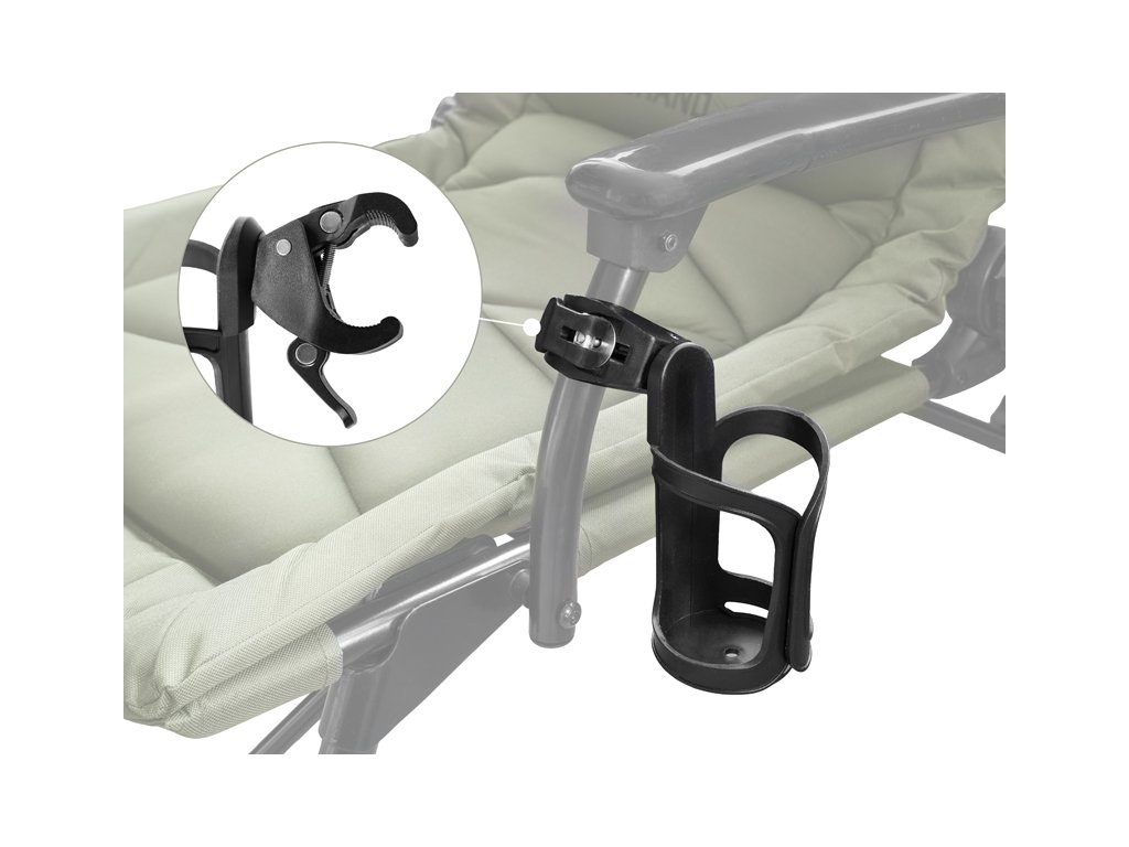 Vychutnávajte si svoje nápoje z pohodlia vášho rybárskeho kresla pomocou univerzálneho držiaka na nápoje Delphin DrinxHOLD. Vďaka nastaviteľným čeľustiam je ho možné uchytiť na väčšinu štandardných kempingových a rybárskych kresiel, bycikel či kočík. Pákový mechanizmus zabezpečuje pevné uchytenie na konštrukciu a predchádza uvoľneniu držiaka. Závesný systém zabezpečuje zvislú polohu nápoja v držiaku aj v prípade uchytenia na šikmú konštrukciu. Flexibilný materiál držiaka sa dokáže prispôsobiť rôznym priemerom nápojov až do maximálneho priemeru 8cm.Dodatočné parametre