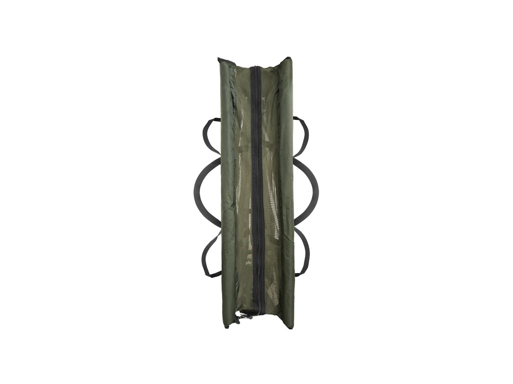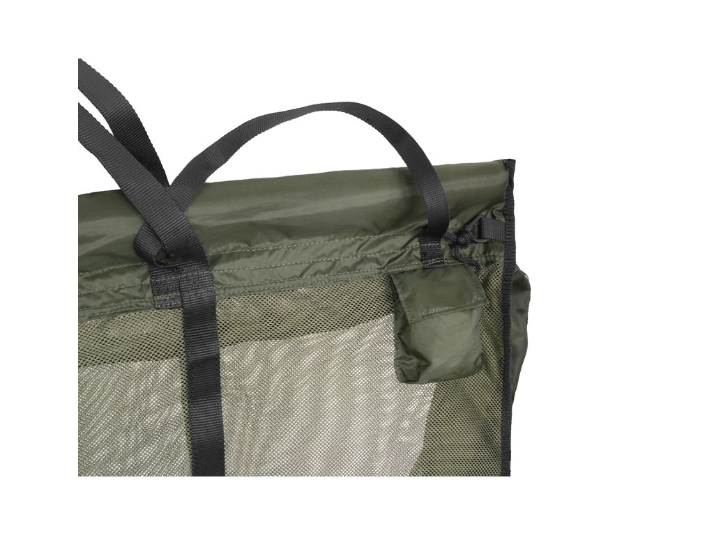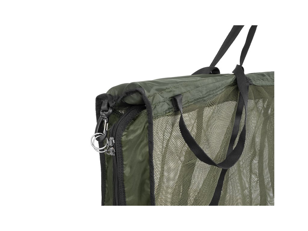 Sieťka je vystužená dvomi čiernymi textilnými popruhmi prechádzajúcimi do stredového úchopu. Vďaka dlhým úchopom je možné tašku jednoducho zavesiť na váhu. Taška je navyše opatrená textilnými úchopmi na oboch stranách, pre jednoduché dvíhanie a prenášanie. Masívny zips je po oboch bokoch a takisto na vrchnej časti, to znamená, že CWS dokážete takmer celú rozzipsovať pre príjemnejšiu manipuláciu s rybou.