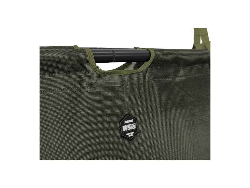 Vážiaca taška vyrobená z pevného sieťovaného materiálu, ktorú možete vďaka plavákom a sieťovanému materiálu použiť aj ako prechovávací sak pred tým, ako rybu zvážite, či pustíte. Vďaka reflexným páskam na plavákoch uvidíte tašku po zasvietení čelovkou vo vode aj po tme. Sieťovaný materiál okrem toho znižuje celkovú hmotnosť tašky a pri dvíhaní a manipulácii s rybou všetka voda vytečie, teda nepreťažuje sa materiál a umožňuje aj presnejšie váženie. Masívny zips je po oboch bokoch tašky a takisto na vrchnej časti, to znamená, že WSM dokážete takmer celú rozzipsovať pre príjemnejšiu manipuláciu s rybou. Pevné hliníkové trubky s priemerom 25mm je možné bez problémov zložiť, aby pri transporte nezaberali miesto. Vďaka dlhým textilným popruhom je zavesenie na trojnožku veľmi komfortné a jednoduché. Tieto popruhy majú kovové oká na zavesenie tašky na hák váhy a pod. Na bežné prenášanie poslúžia štyri kratšie popruhy v rohoch tašky. Samozrejmosťou je kotviaca šnúra s dĺžkou až 4,5m a so závitom na konci. Vďaka tomuto systému je kotvenie na brehu veľmi bezpečné. Šnúra je umiestnená v integrovanom a diskrétnom vrecúšku na boku tašky. Vo vrchnej časti a takisto na boku sa nachádza klip, ktorý slúži na fixovanie bežcov zipsa, aby nedošlo k neželanému otvoreniu tašky, alebo je možné klipy použiť ako ďalšie body na kotvenie.Technické parametre: