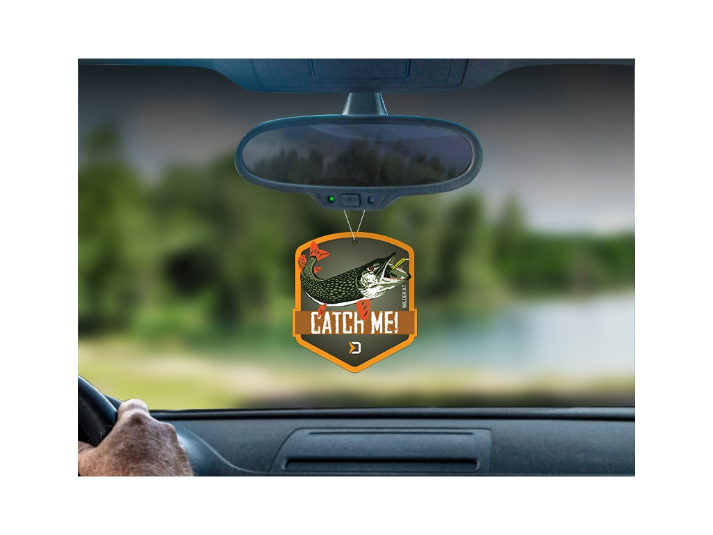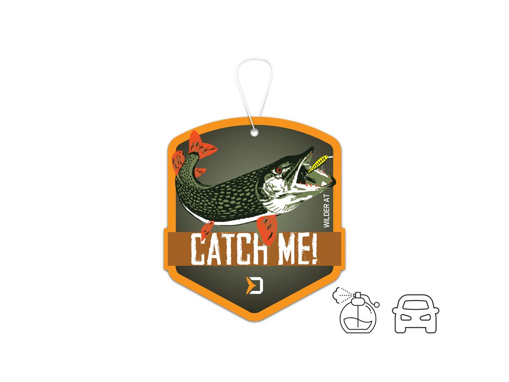 Osviežte interiér svojho auta, či miestnosti štýlovou vôňou zo série CatchME! Vďaka originálnemu dizajnu s motívom šťuky je určená najmä pre všetkých priaznivcov lovu tohto dravca.Zavesenie na ľubovoľné miesto umožňuje elastická gumička.