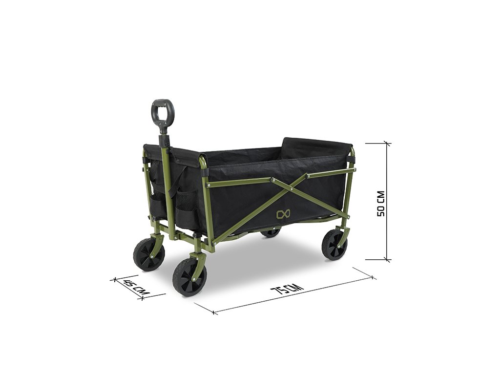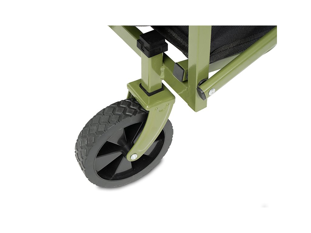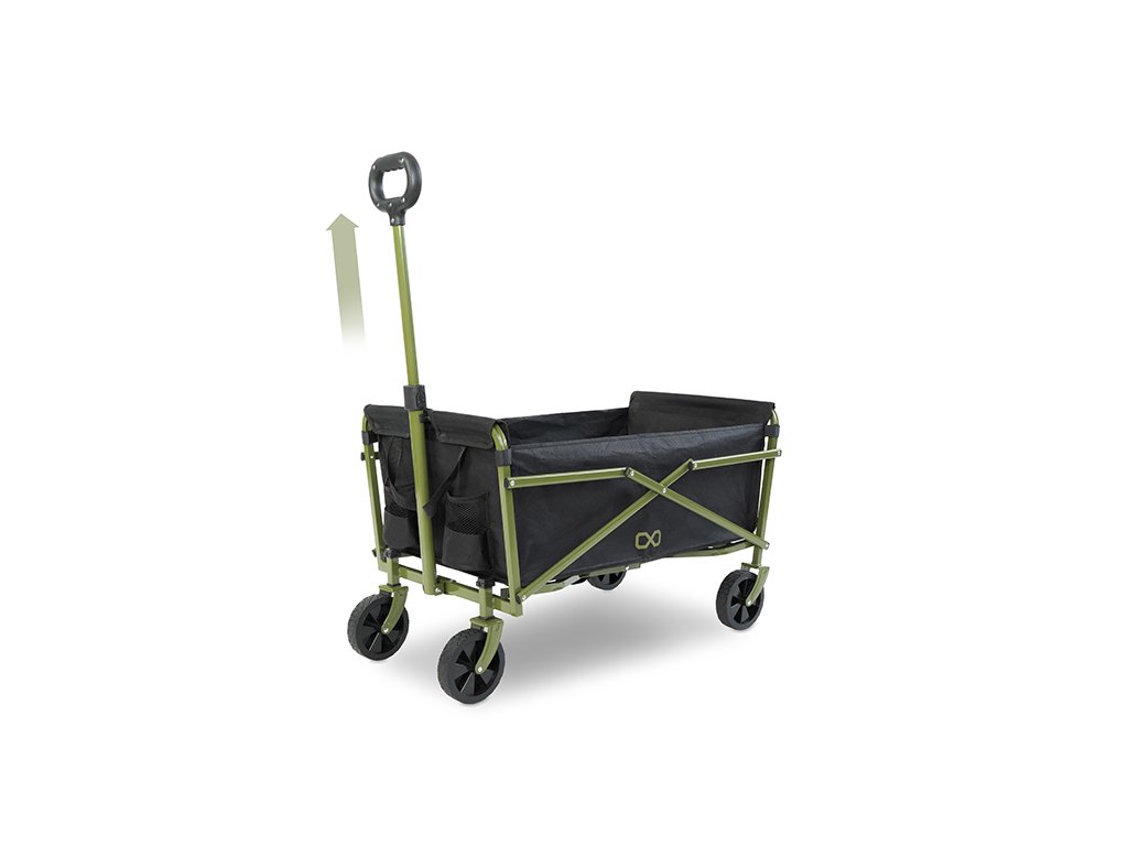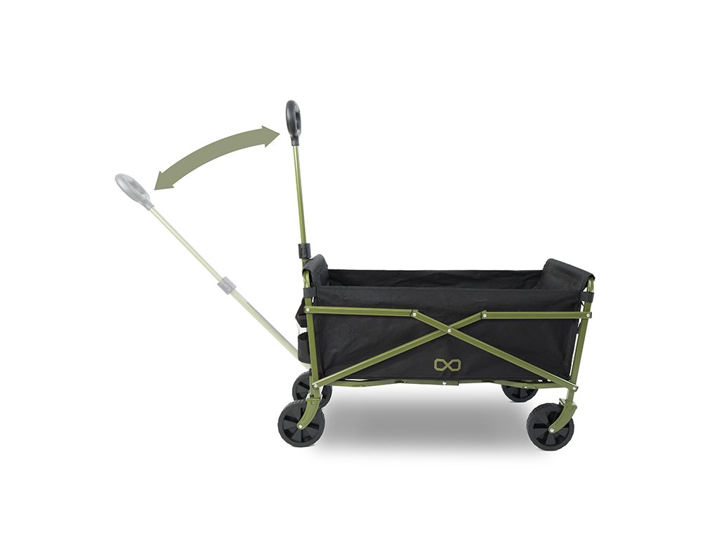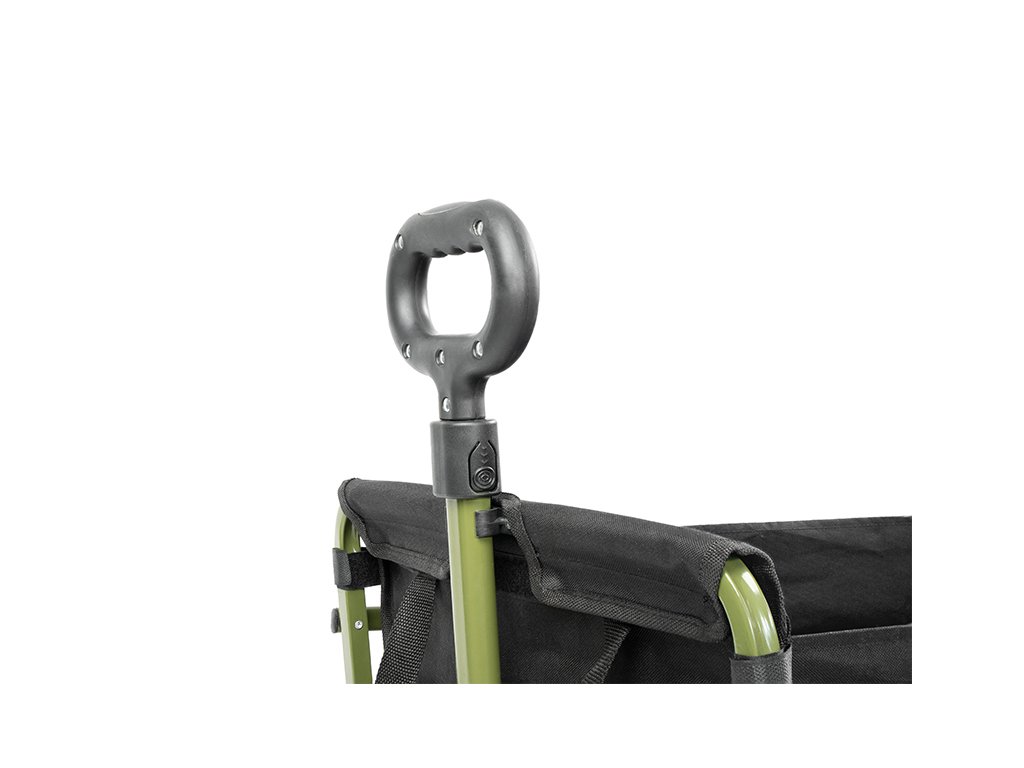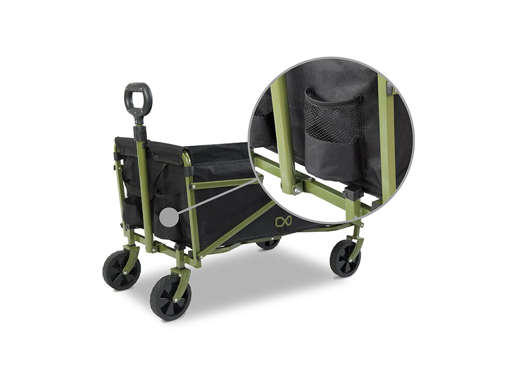K vysoko praktickému využitiu vozíka prispievajú aj dva držiaky na fľašu či iné príslušenstvo, ktoré sú umiestnené na prednej strane. Ďalšou výhodou je pútko umiestnené na dne úložného priestoru, ktoré zjednoduší skladanie vozíka. Pre pohodlný transport vozíka v zloženom stave sú na oboch stranách prišité úchyty.