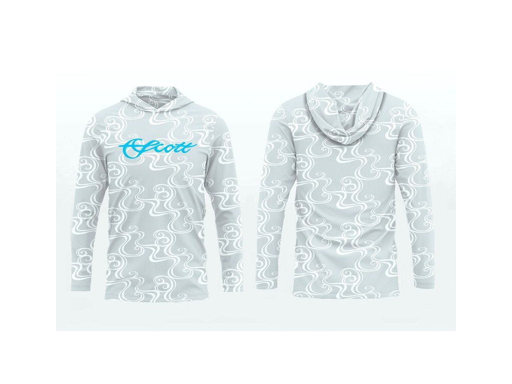 Výkonná mikina s dlhým rukávom s vodným vzorom a čírou farbou Scott na prednej strane.