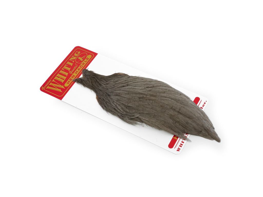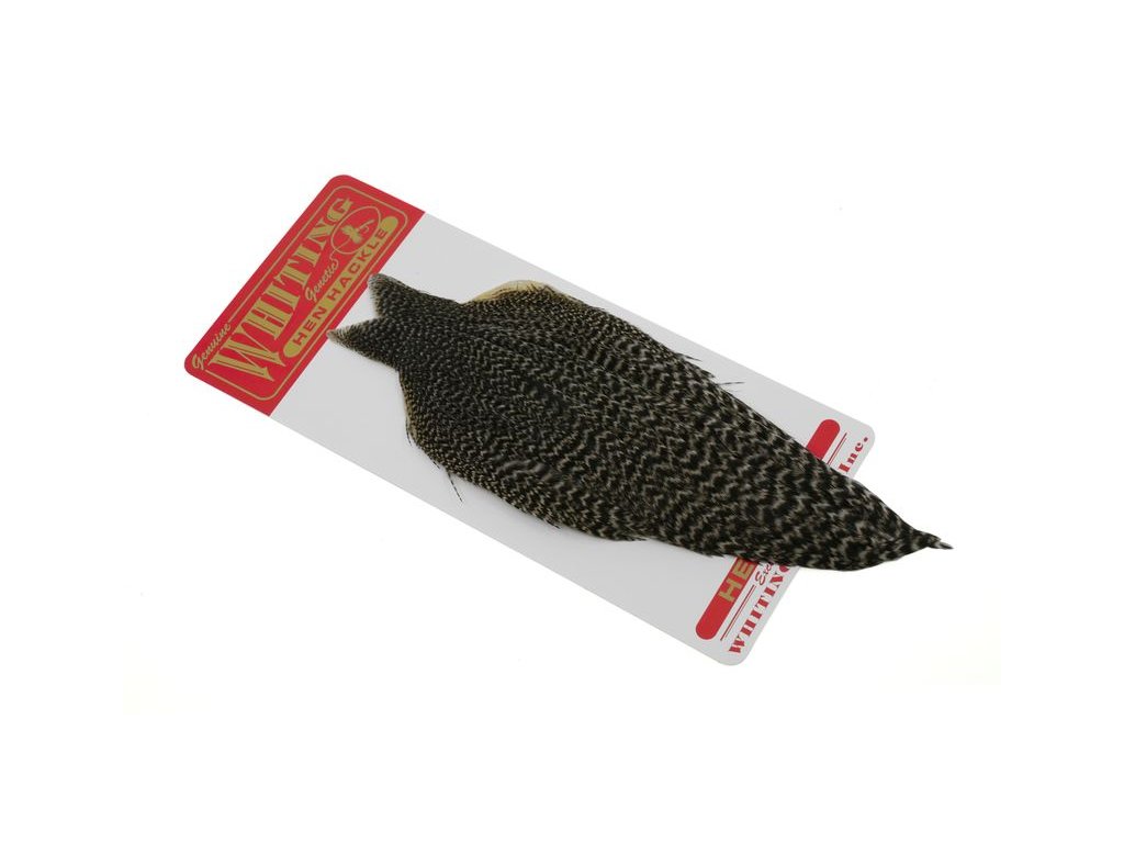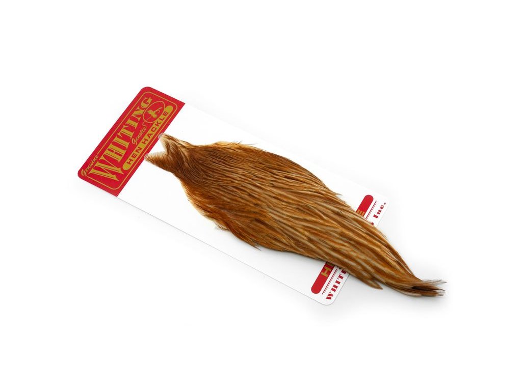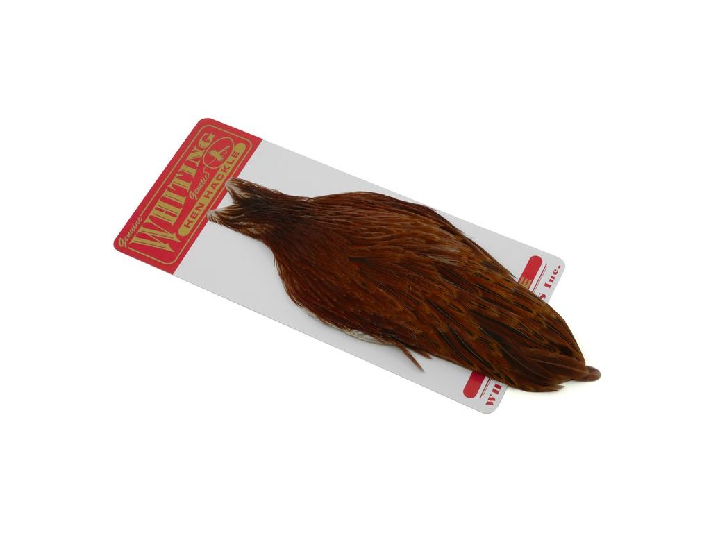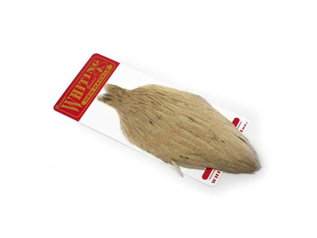 Whiting Hen Cape je v súčasnosti najrozšírenejším plášťom na lov sliepok na svete. Poskytuje vysokokvalitné perie vynikajúce na nespočetné množstvo viazaní. Sliepka je základný a nevyhnutný materiál na viazanie. Jedným z jeho hlavných použití je na výrobu krídeliek na suchú mušku. Alebo keď sa zabalí, vytvorí skvelý golier na nymfu alebo mokrú mušku. Väčšie perá z kapríka sú vynikajúce aj na výrobu mušiek typu matuka, strímrov a celých perových krídel. Každý muškár by mal mať na svojom viazačskom stole celú škálu kuracích perí.