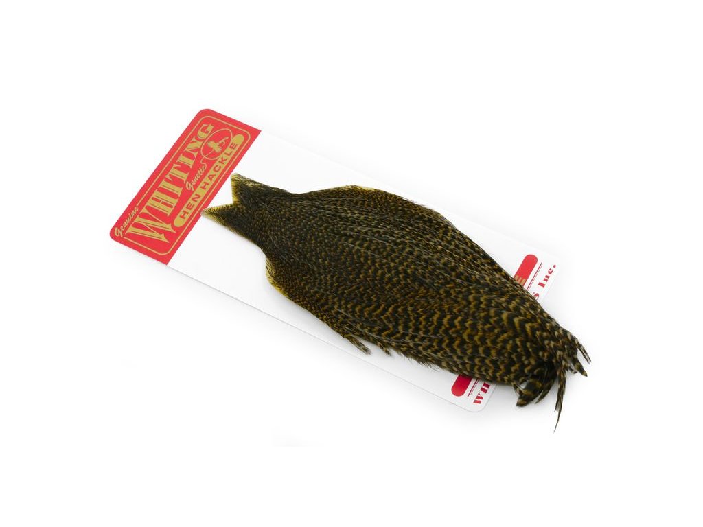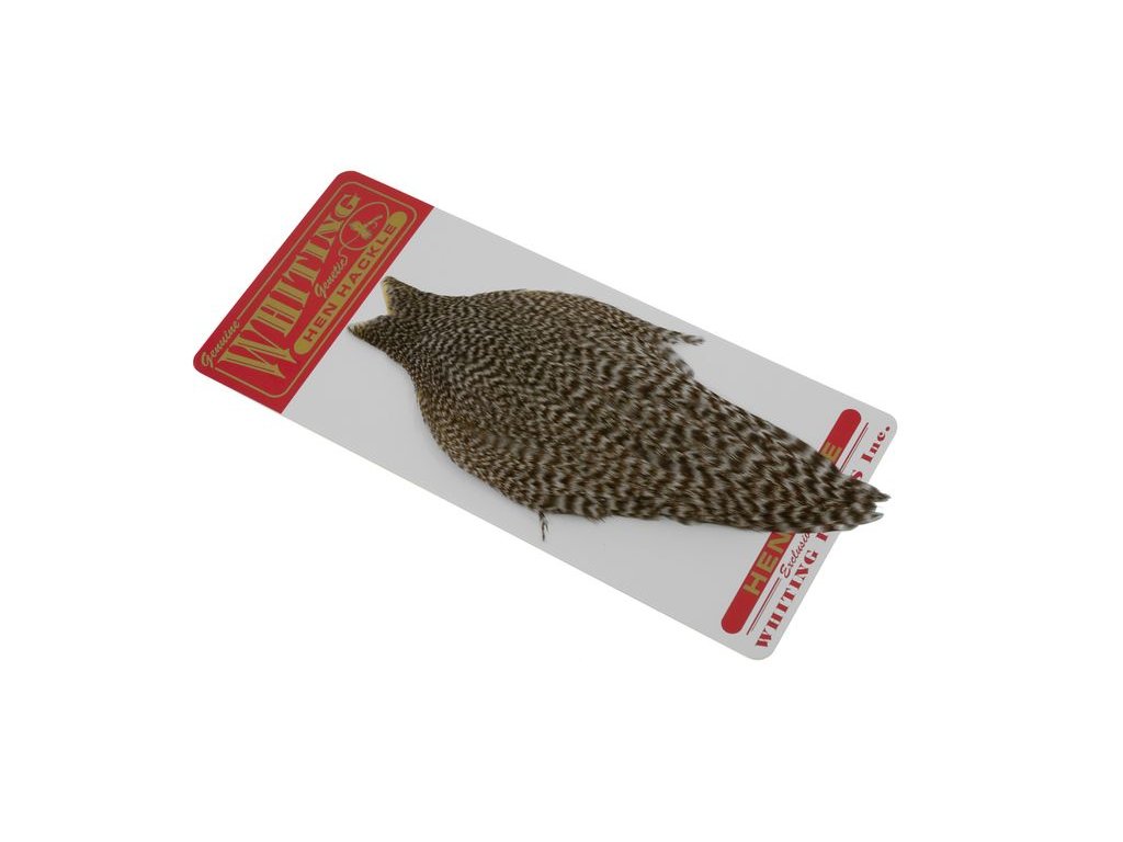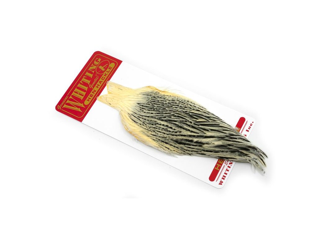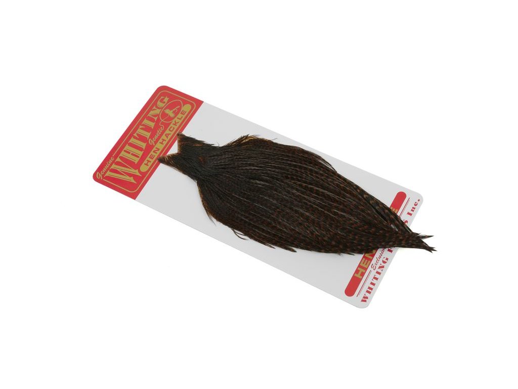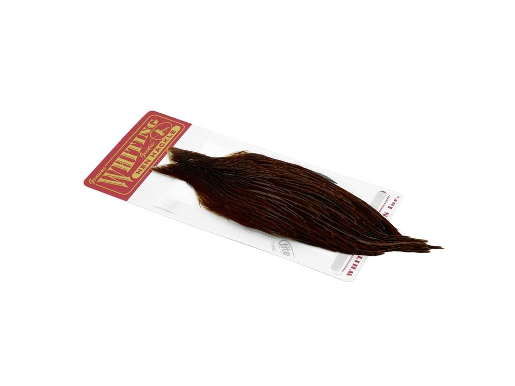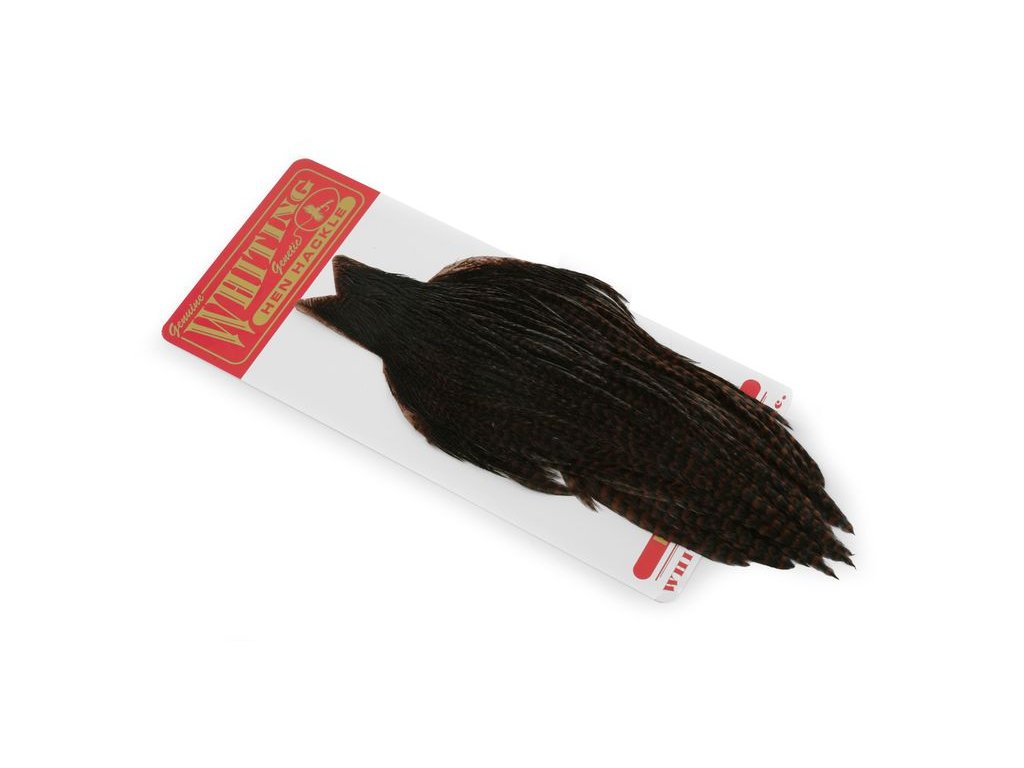 Whiting Hen Cape je v súčasnosti najrozšírenejším plášťom na lov sliepok na svete. Poskytuje vysokokvalitné perie vynikajúce na nespočetné množstvo viazaní. Sliepka je základný a nevyhnutný materiál na viazanie. Jedným z jeho hlavných použití je na výrobu krídeliek na suchú mušku. Alebo keď sa zabalí, vytvorí skvelý golier na nymfu alebo mokrú mušku. Väčšie perá z kapríka sú vynikajúce aj na výrobu mušiek typu matuka, strímrov a celých perových krídel. Každý muškár by mal mať na svojom viazačskom stole celú škálu kuracích perí.