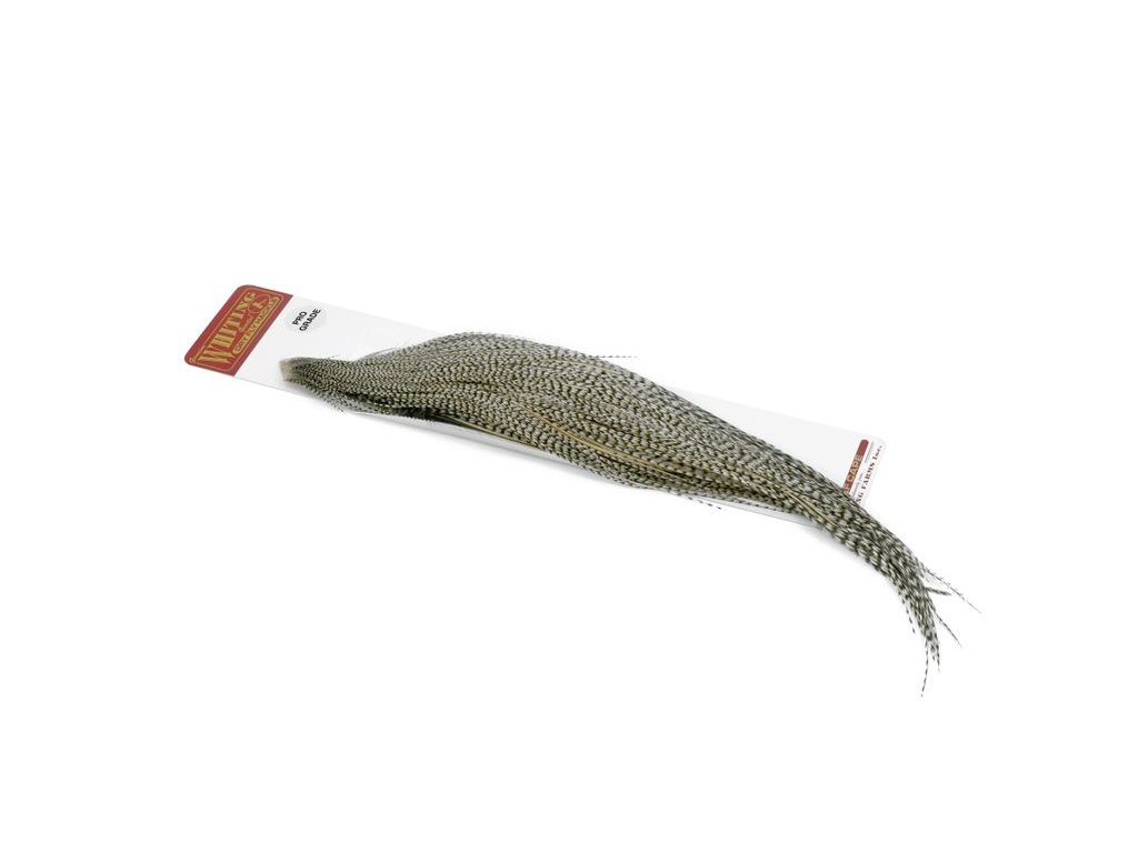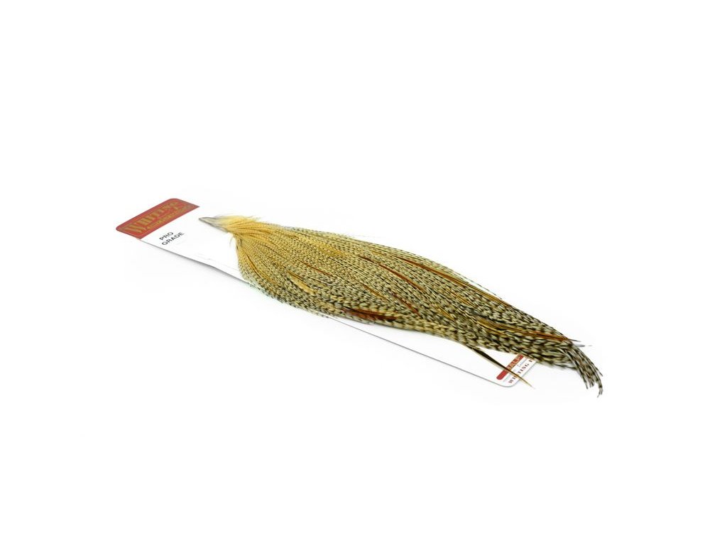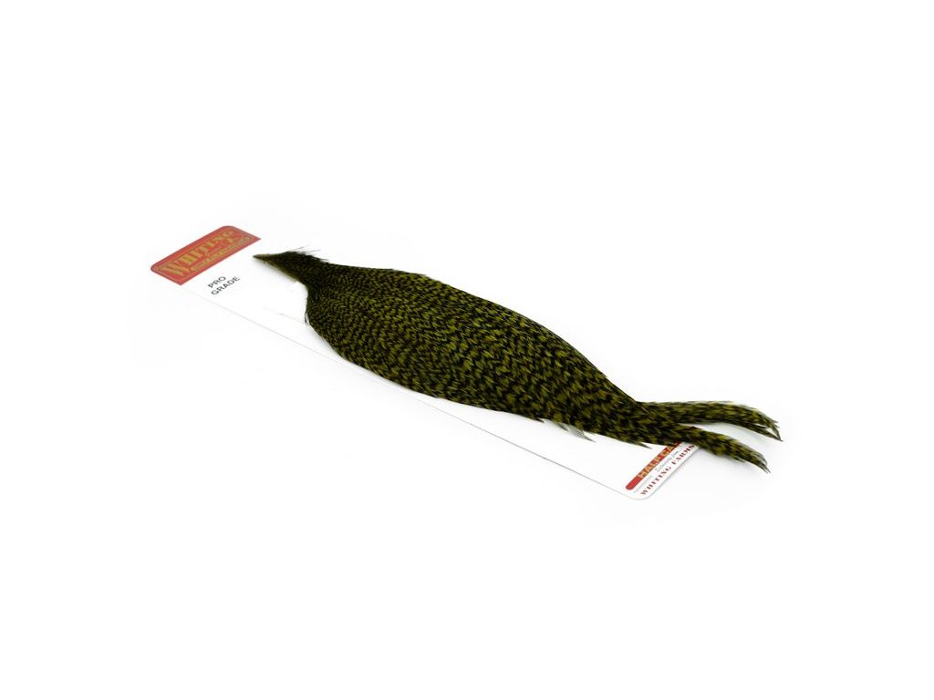 THE OLYMPIC GRADING SYSTEM Whiting's Olympic Grading System was developed to consistently grade capes and saddles across all dry fly product lines. Whiting Farms does not grade from harvest to harvest or “batch to batch”. We do not grade to push up or down pelts to meet certain sales requirements or financial obligations. We do not grade to meet consumer demand. Rather, our grading methodology remains consistent throughout the years and is independent of any bias that would skew the true value of the pelt. When grading our pelts, one rule-of-thumb always stands true: the quality level of the feather is always consistent. What does this mean? It means that each dry fly feather has a supple quill, void of twist, contains dense barbing and is greater than 85% web-free. If a pelt doesn’t meet this core criteria, the pelt is never sold in retail.