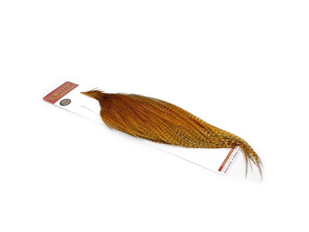 Tieto Whiting polovičné kapríky s dlhými pružnými perami, neuveriteľnou hustotou ostňov a celou škálou veľkostí hackov až do 20-tych rokov stanovujú priemyselný štandard kvality a hodnoty. Táto produktová línia vychádza z legendárnej zásoby Hoffman grizzly super hackle. Bronzová trieda nie je len najlepším miestom z hľadiska hodnoty, ale podľa slov Toma Whitinga je tiež dostatočná pre 90 % potrieb väčšiny tierov. Priemerné pierko v bronzovom plášti sa viaže na 1 mušku a veľkosti hackov pokrývajú 5 až 6 veľkostí háčikov (t. j. veľkosti 10 až 18). Hnedá farba môže byť farbená, ak nie je k dispozícii prírodná; ostatné farby sú prírodné, ak nie je uvedené, že sú farbené. Nová farba barred dark ginger je vynikajúcou náhradou za ťažko dostupnú cree.