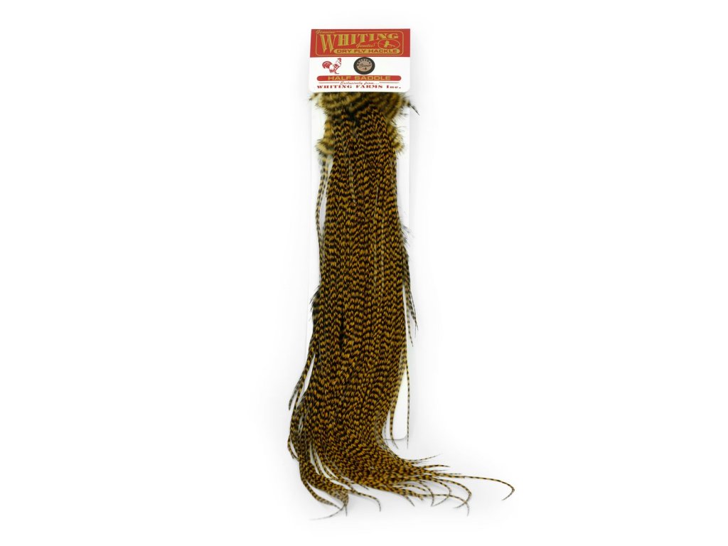 Získajte jedny z najlepších suchých mušiek na svete! Ide o 1/2 sedielka v bronzovej farbe. Sedlá, ktoré majú dlhé rovnomerné vlákna haklu, sú skvelé, pretože na jednom stonku haklu môžete naviazať veľa mušiek. Vlasy sú husté a stonky haklov sú pružné a ľahko sa obaľujú. V podstate máte neuveriteľnú zásobu hackov na viazanie mušiek od č. 12 až po č. 18 (v závislosti od štýlu háčika).
