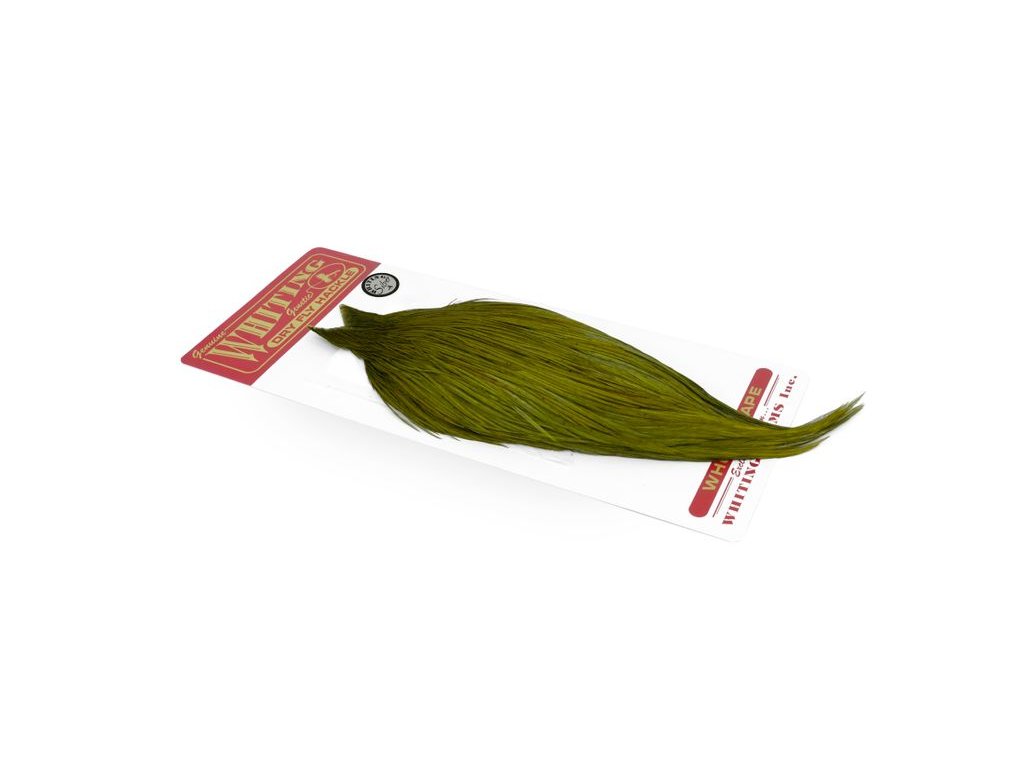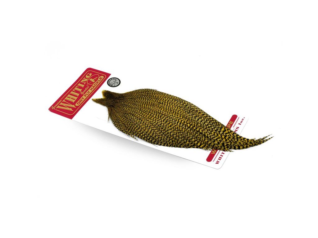 THE OLYMPIC GRADING SYSTEM Whiting's Olympic Grading System was developed to consistently grade capes and saddles across all dry fly product lines. Whiting Farms does not grade from harvest to harvest or “batch to batch”. We do not grade to push up or down pelts to meet certain sales requirements or financial obligations. We do not grade to meet consumer demand. Rather, our grading methodology remains consistent throughout the years and is independent of any bias that would skew the true value of the pelt. When grading our pelts, one rule-of-thumb always stands true: the quality level of the feather is always consistent. What does this mean? It means that each dry fly feather has a supple quill, void of twist, contains dense barbing and is greater than 85% web-free. If a pelt doesn’t meet this core criteria, the pelt is never sold in retail.