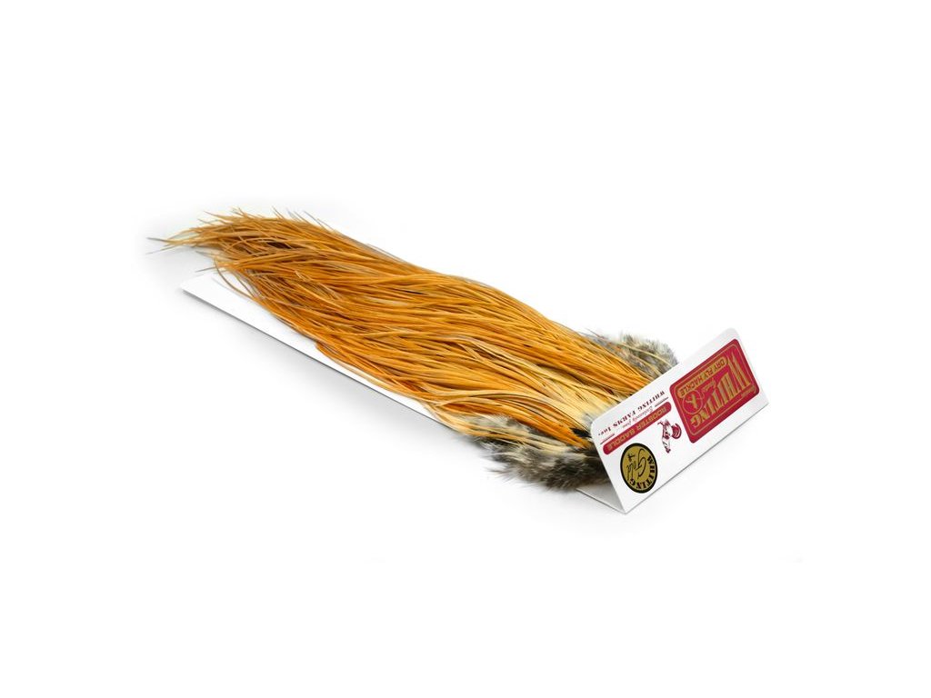 THE OLYMPIC GRADING SYSTEM Whiting's Olympic Grading System was developed to consistently grade capes and saddles across all dry fly product lines. Whiting Farms does not grade from harvest to harvest or “batch to batch”. We do not grade to push up or down pelts to meet certain sales requirements or financial obligations. We do not grade to meet consumer demand. Rather, our grading methodology remains consistent throughout the years and is independent of any bias that would skew the true value of the pelt. When grading our pelts, one rule-of-thumb always stands true: the quality level of the feather is always consistent. What does this mean? It means that each dry fly feather has a supple quill, void of twist, contains dense barbing and is greater than 85% web-free. If a pelt doesn’t meet this core criteria, the pelt is never sold in retail.