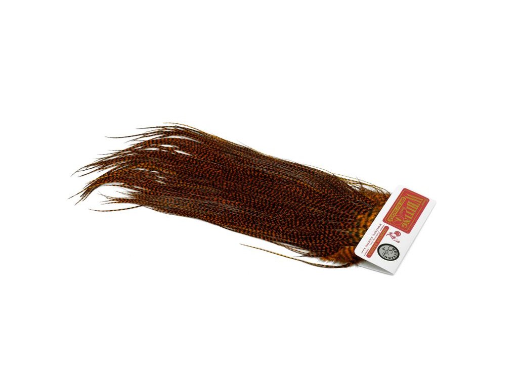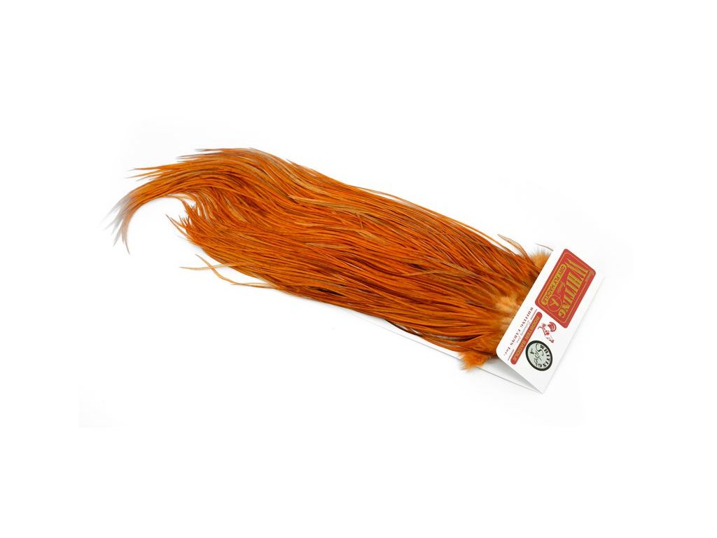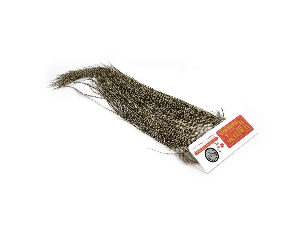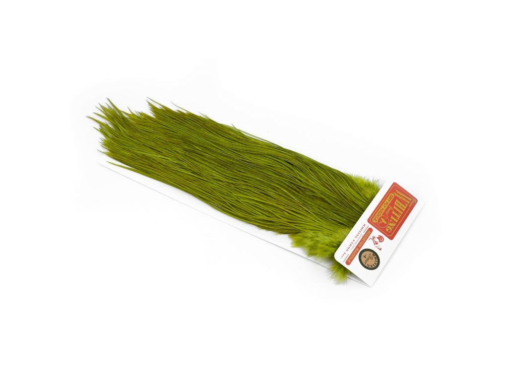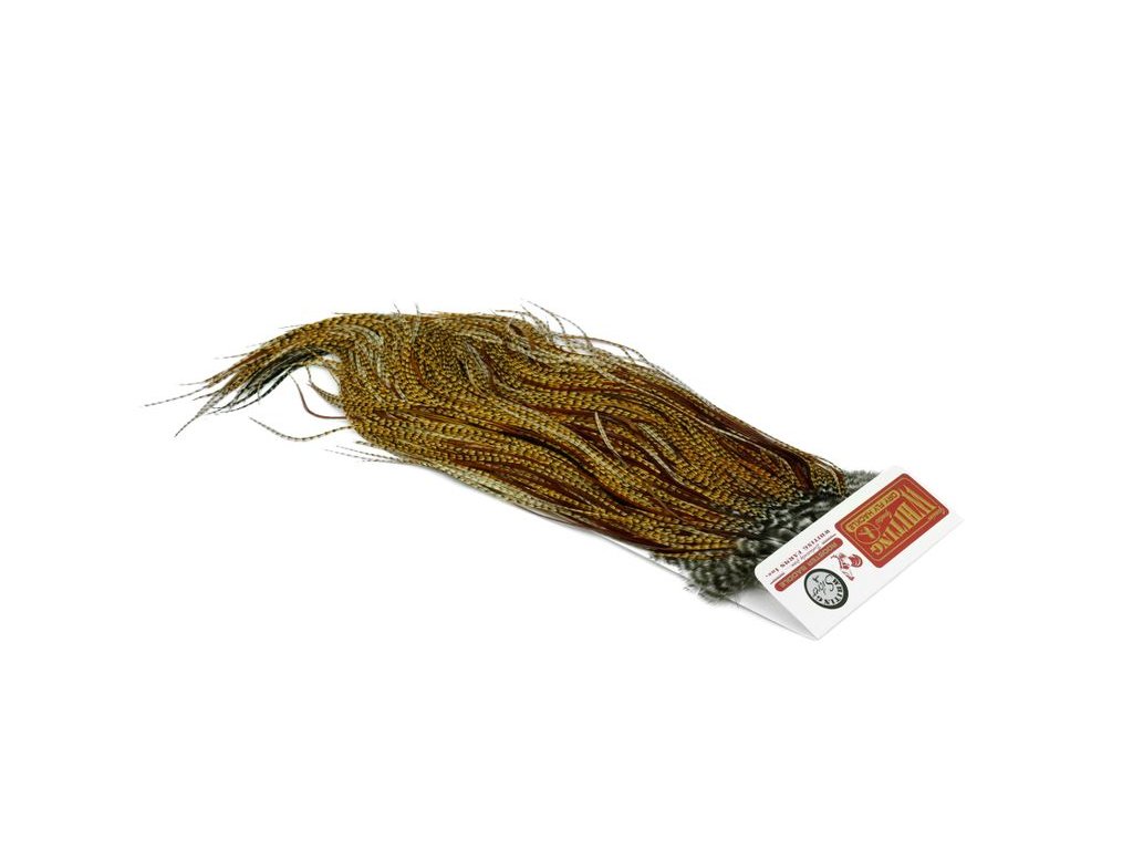 THE OLYMPIC GRADING SYSTEM Whiting's Olympic Grading System was developed to consistently grade capes and saddles across all dry fly product lines. Whiting Farms does not grade from harvest to harvest or “batch to batch”. We do not grade to push up or down pelts to meet certain sales requirements or financial obligations. We do not grade to meet consumer demand. Rather, our grading methodology remains consistent throughout the years and is independent of any bias that would skew the true value of the pelt. When grading our pelts, one rule-of-thumb always stands true: the quality level of the feather is always consistent. What does this mean? It means that each dry fly feather has a supple quill, void of twist, contains dense barbing and is greater than 85% web-free. If a pelt doesn’t meet this core criteria, the pelt is never sold in retail.