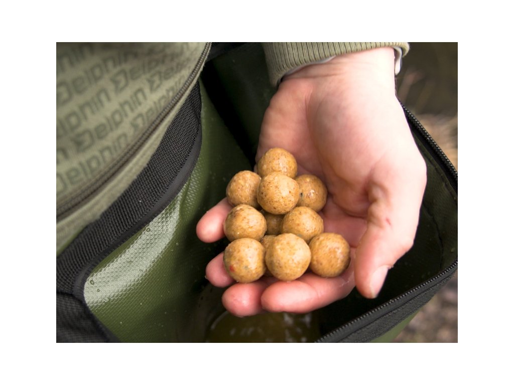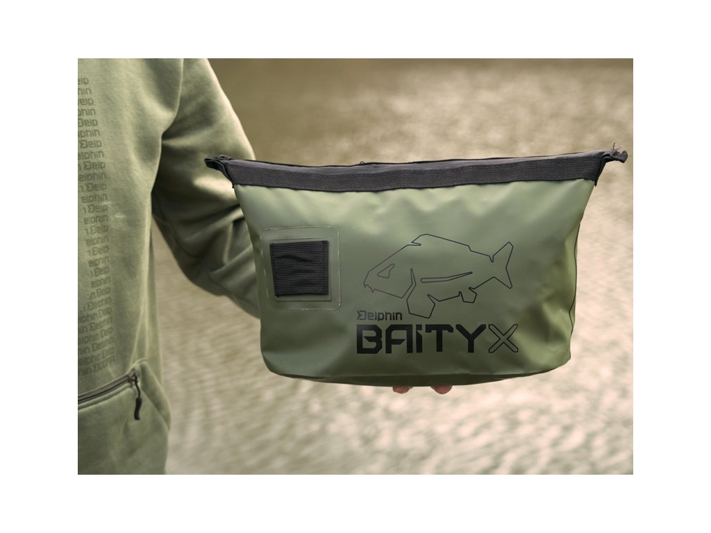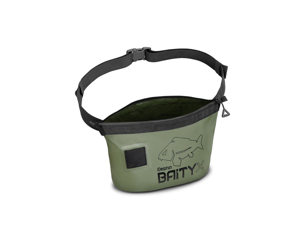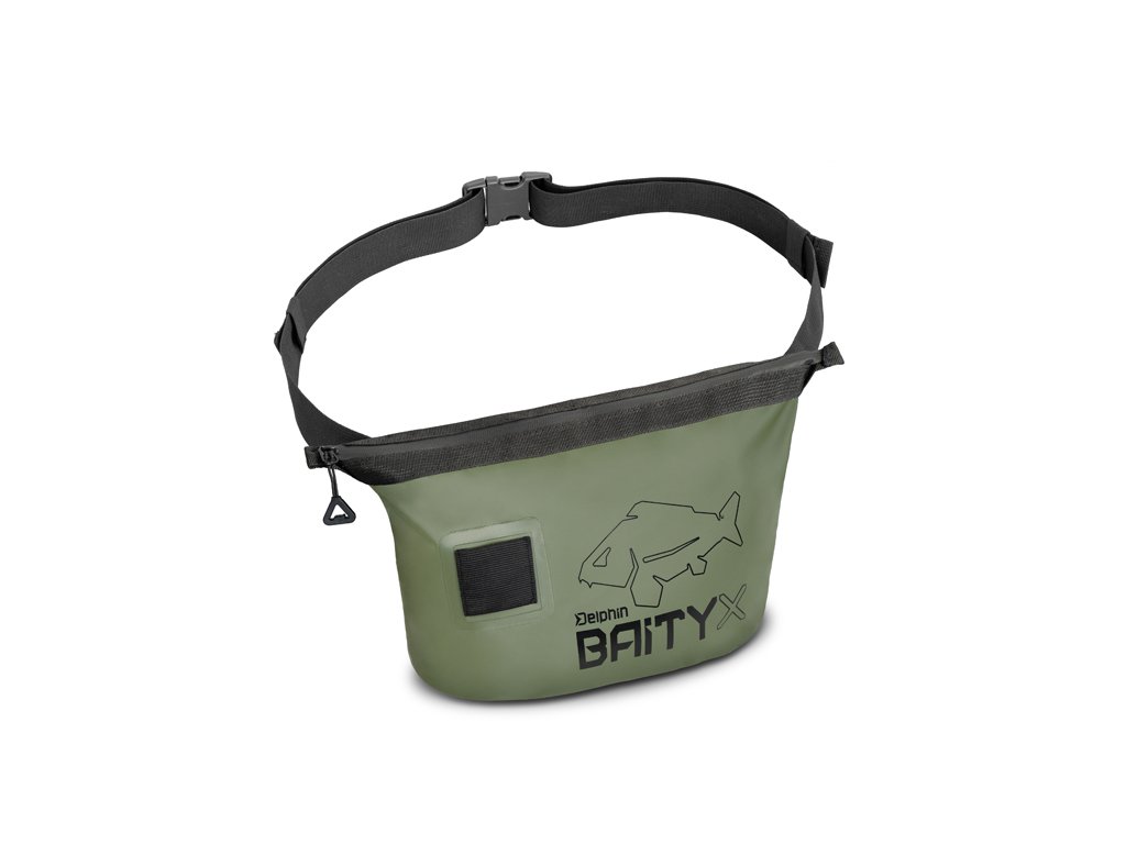 Zakrmovacia ľadvinka Delphin BAITYX je ideálny doplnok pre každého rybára, ktorý hľadá praktickú pomôcku na zefektívnenie zakrmovania pri vode. Tento produkt ocenia najmä kaprári, ktorých hlavným krmením je boilies, no ľadvinka sa vyznačuje všestranným použitím, takže do nej môžete vložiť aj iné návnady či rybárske príslušenstvo.Delphin BAITYX je vyrobená z kvalitného EVA materiálu, ktorý sa vyznačuje najmä vodeodolnosťou a dlhou životnosťou. Na vrchnej časti sa nachádza vodeodolný zips s dvoma bežcami, ktoré bezpečne udržia obsah ľadvinky vo vnútri. Vnútorný priestor je dostatočne priestranný, čo Vám umožňuje do nej vložiť potrebné množstvo kŕmenia. Vďaka vodeodolným materiálom môžete do nej vložiť vopred predmočený alebo naboostrovaný boilies bez obáv z pretečenia. Ľadvinka z prednej strany disponuje gumeným pútkom na vrhaciu tyč či prak. Na uchytenie ľadvinky okolo pása slúži dĺžkovo nastaviteľný popruh s masívnym upínacím klipom.